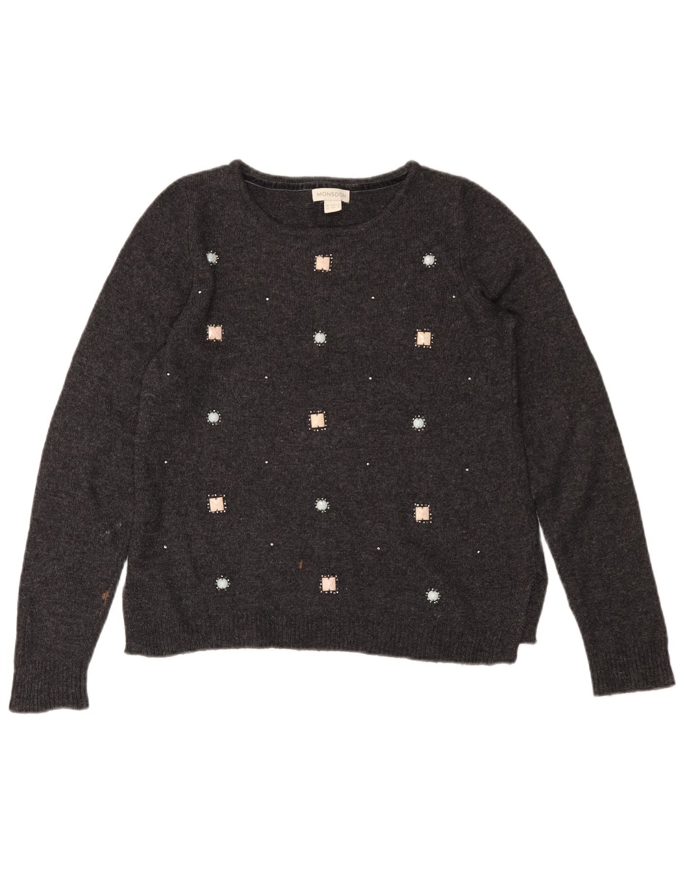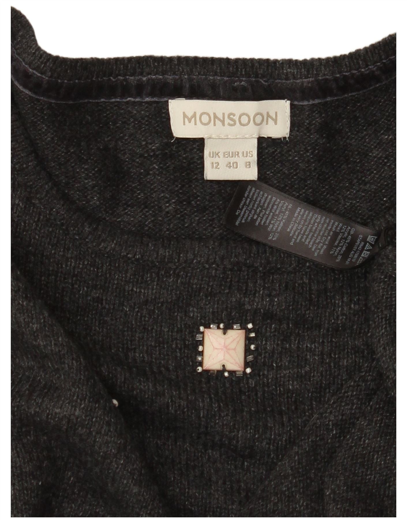 Suéter feminino MONSOON com gola canoa Reino Unido 12 algodão cinza médio