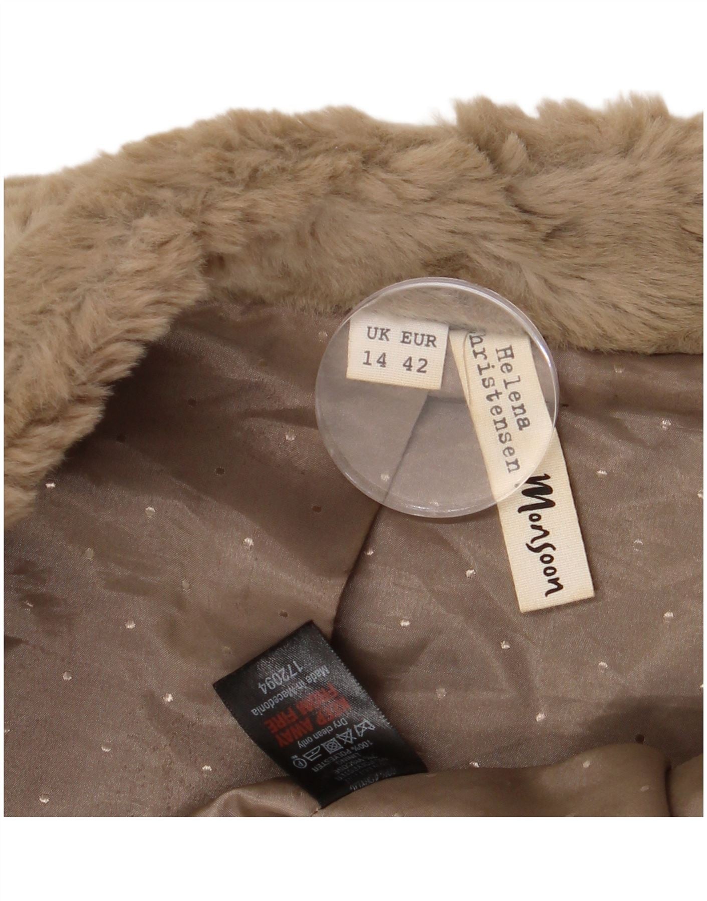 Monsoon Womens Faux Fur Gilet UK 14 Grande Poliéster Floral Marrom