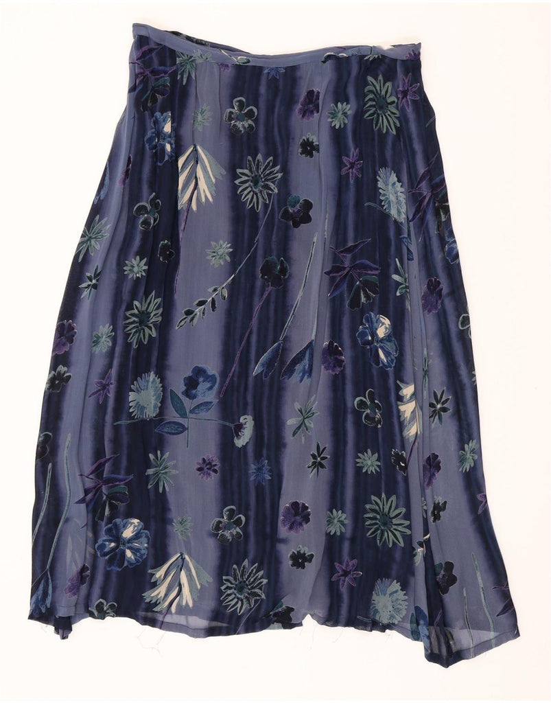 MONSOON Womens High Waist A-Line Skirt UK 22 2XL W34 Blue Floral Cotton