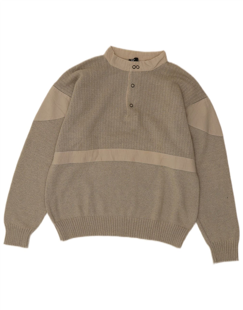 Suéter feminino MONTE CARLO com gola redonda Reino Unido 16 grande bloco colorido cáqui