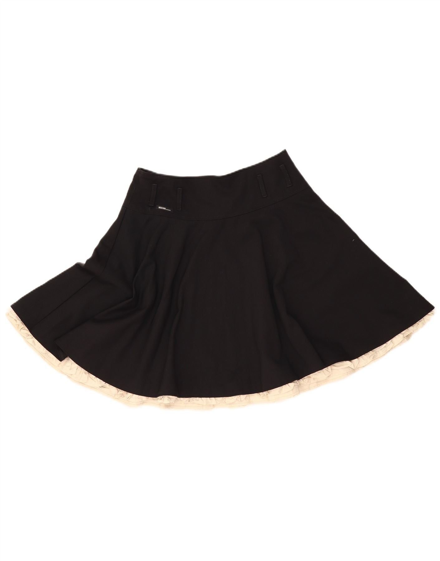 Saia feminina MOSCHINO cintura alta evasê Reino Unido 12 médio W28 preta