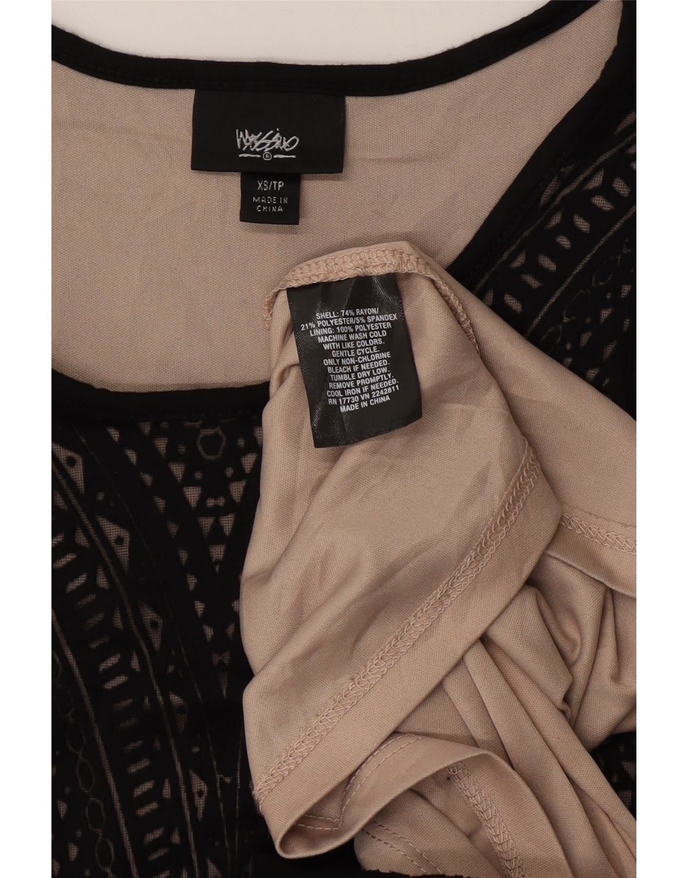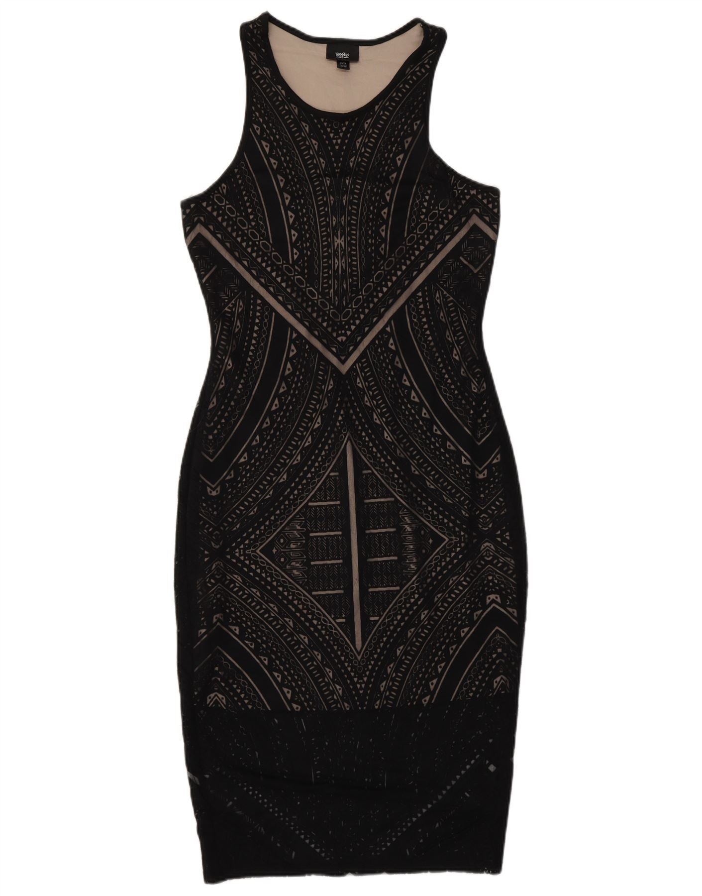 Vestido bodycon feminino sem mangas MOSSIMO UK 6 XS preto geométrico rayon