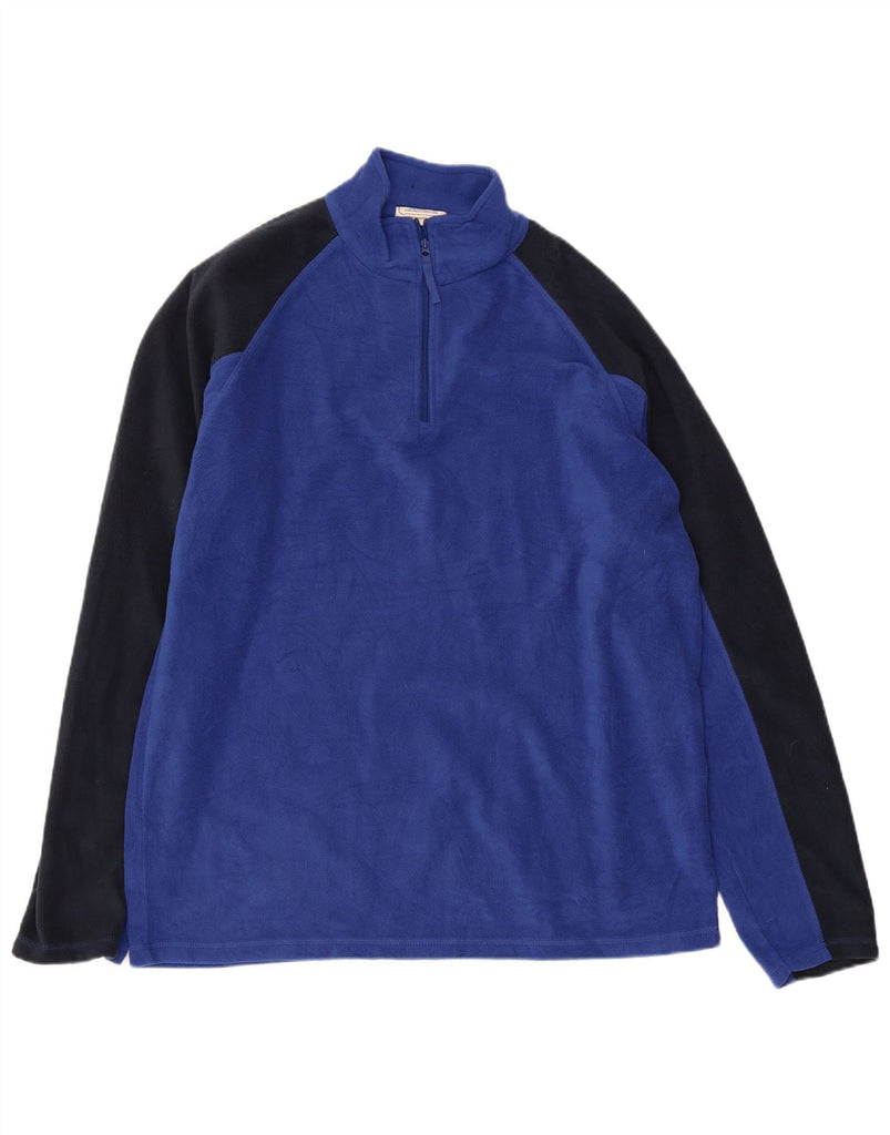MOUNTAIN WAREHOUSE Mens Zip Neck Fleece Jumper Large Blue Colourblock
