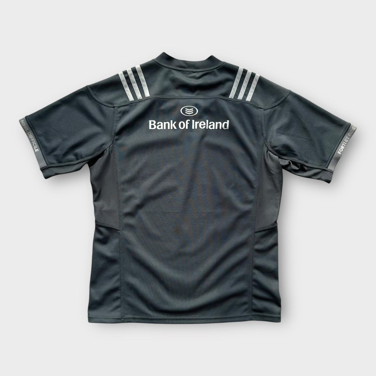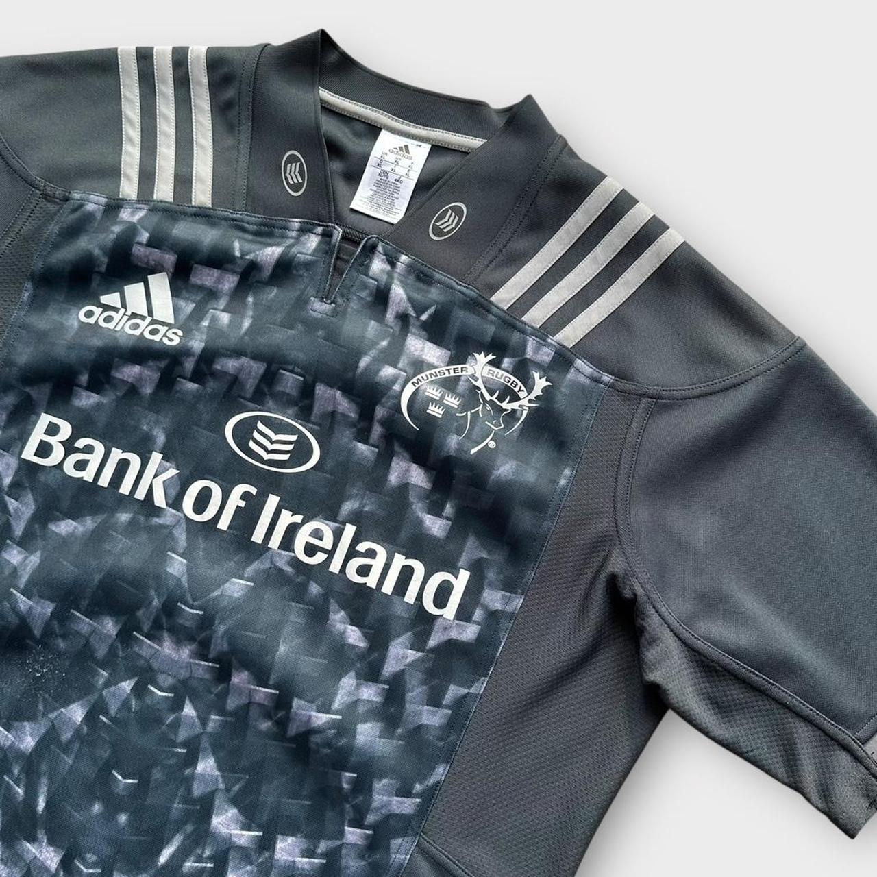 Top clássico de rugby Adidas Munster de segunda faixa de 2017 com logotipos e patrocinador do Banco da Irlanda no peito