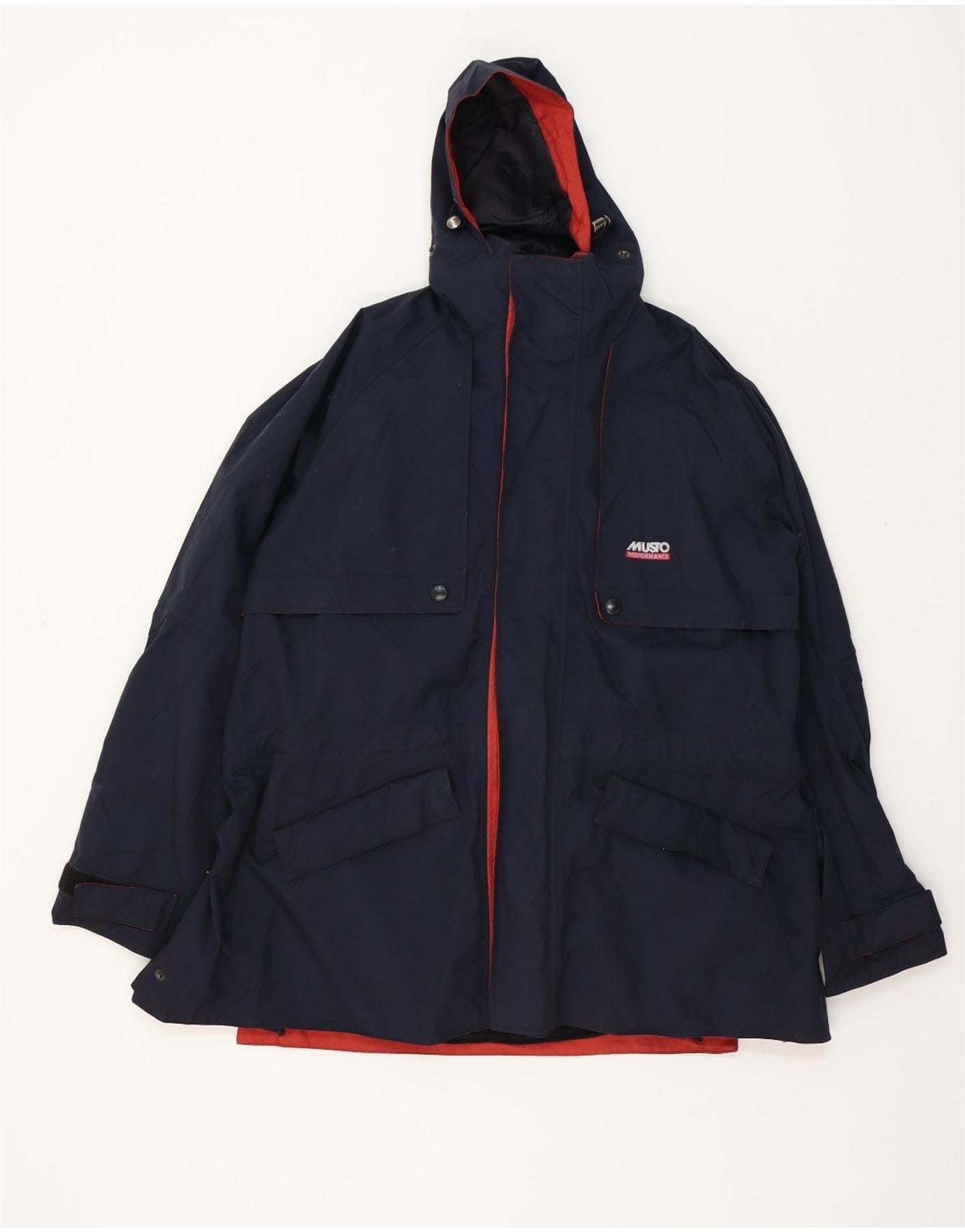 Jaqueta corta-vento masculina Musto com capuz Reino Unido 40 poliéster azul marinho grande
