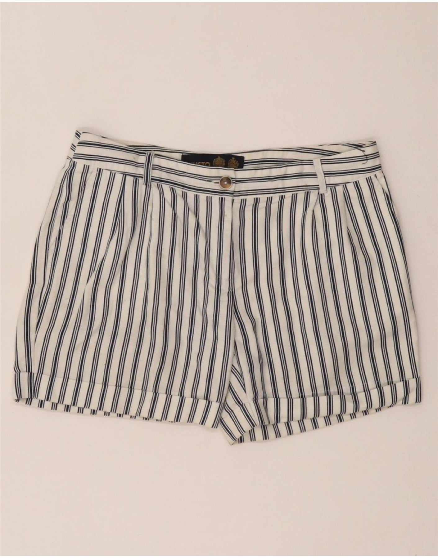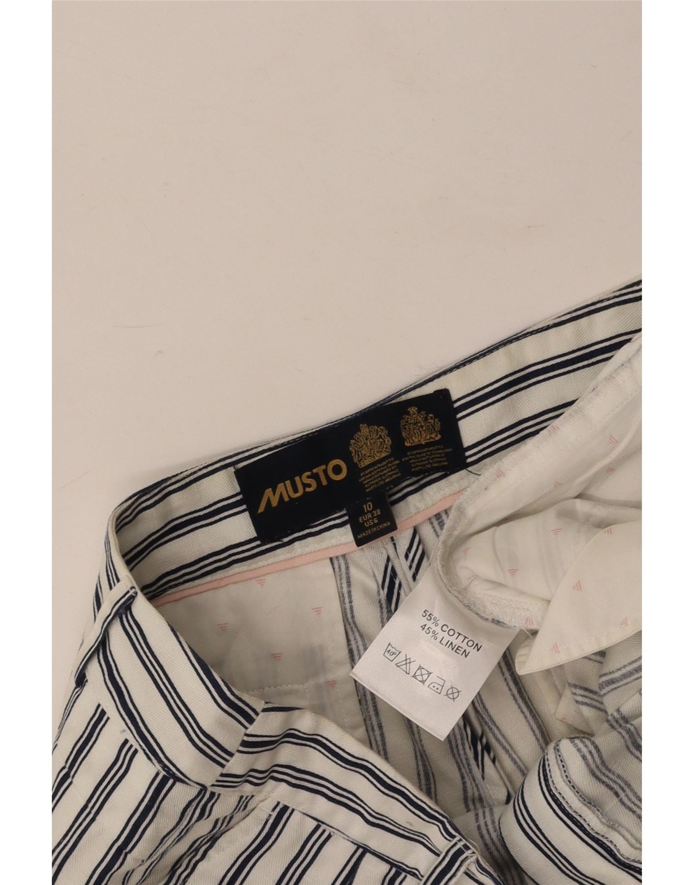 Shorts Chino Feminino Pegged da Musto Reino Unido 10 Pequeno W27 Algodão Listrado Branco