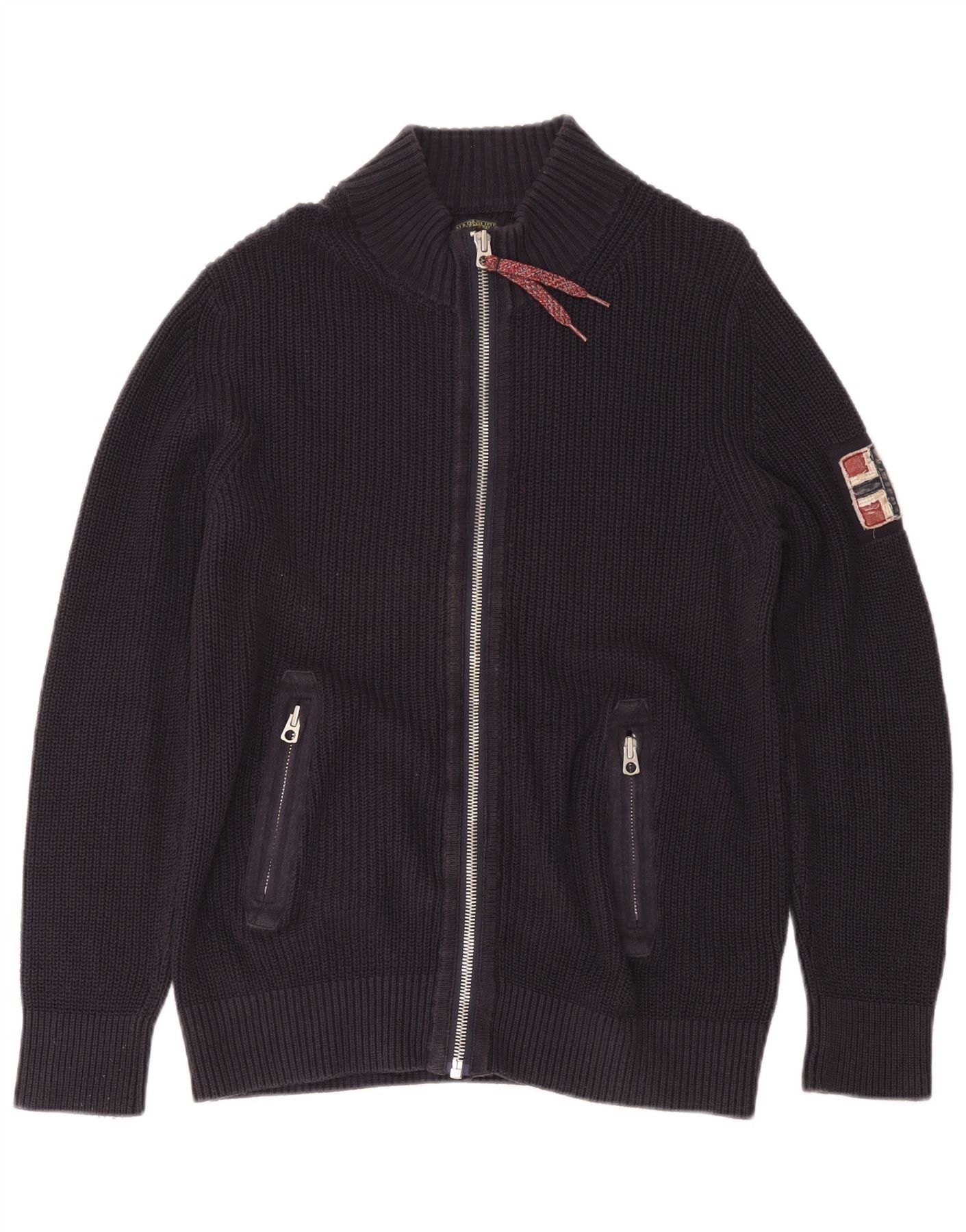 Suéter cardigã masculino geográfico NAPAPIJRI grande algodão azul marinho