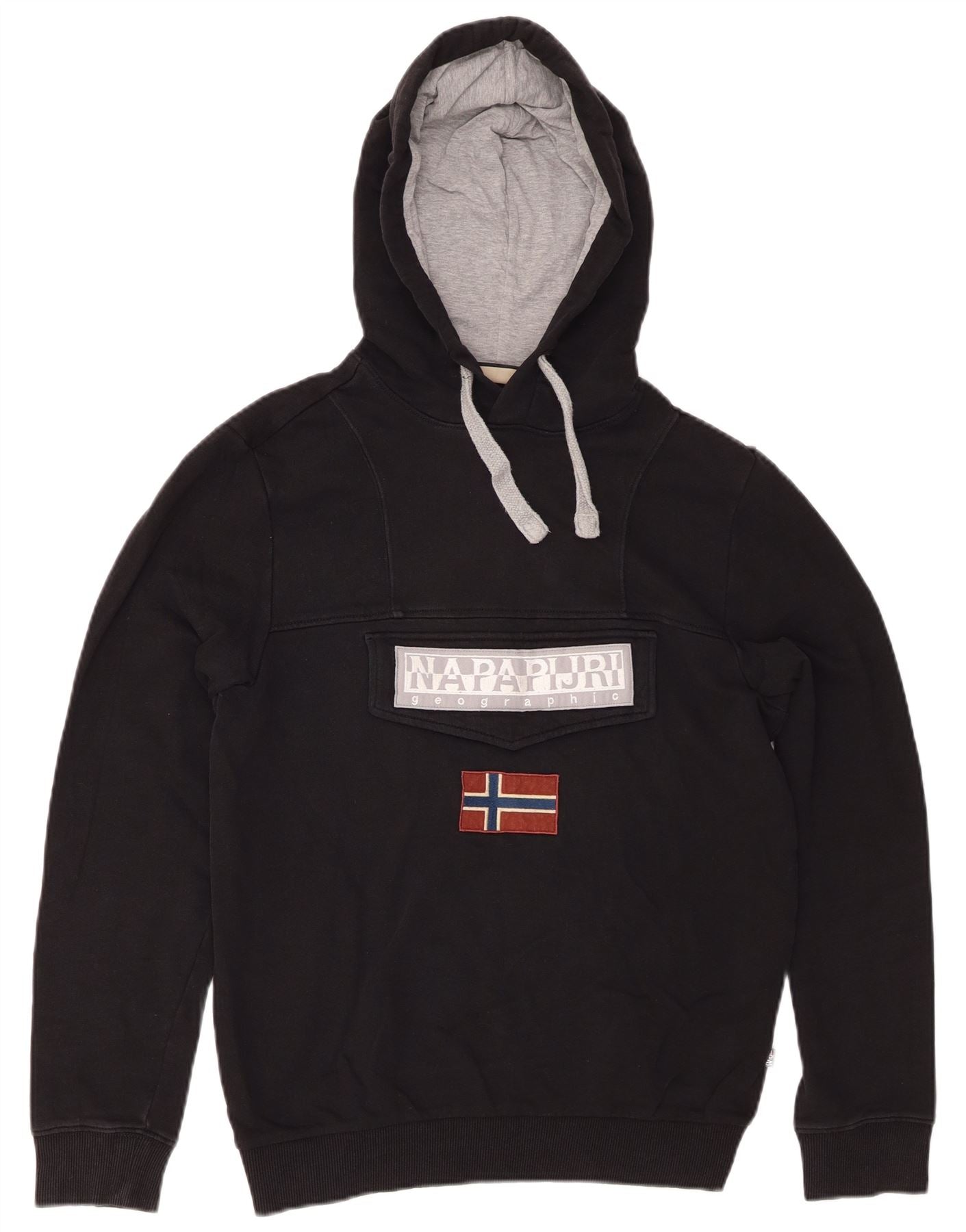 NAPAPIJRI Mens Geographic Loose Fit Graphic Hoodie Jumper XS Black Cotton
