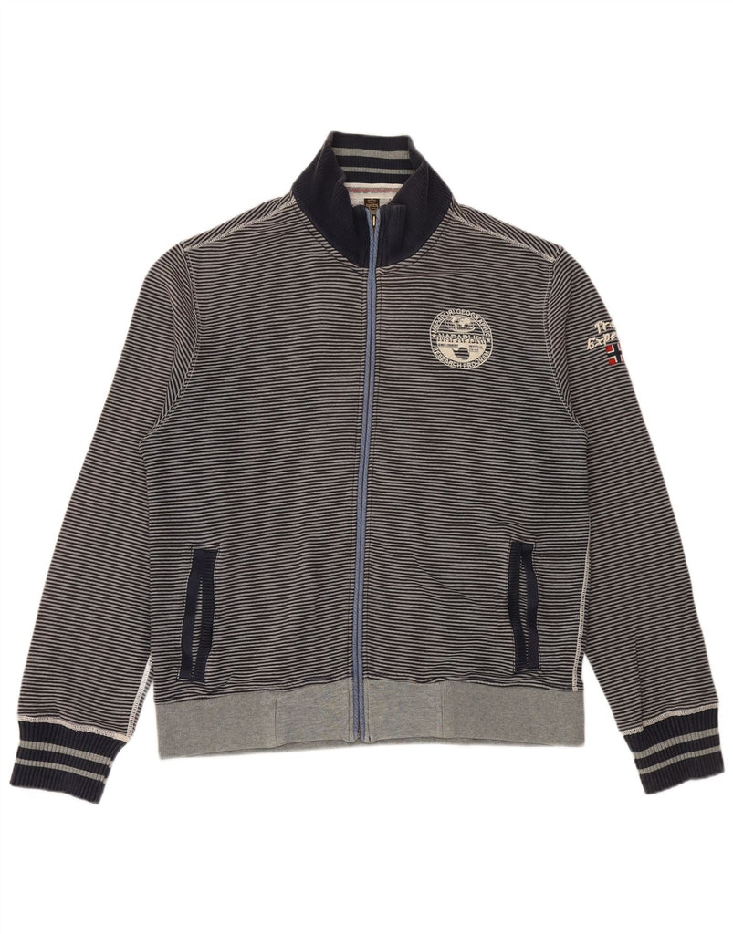 NAPAPIJRI Mens Graphic Tracksuit Top Jacket Large Navy Blue Pinstripe