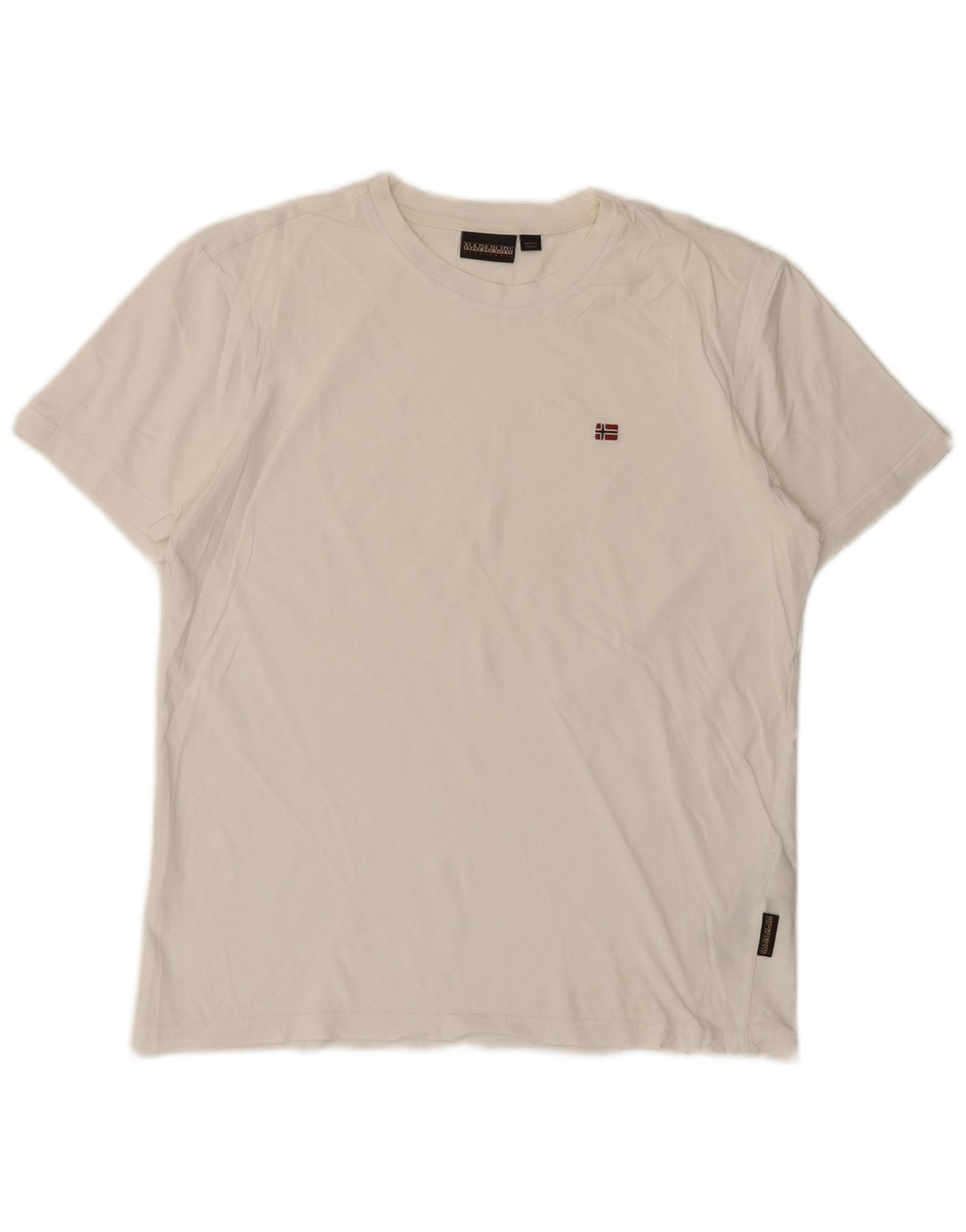- Descrição da IA: Esta camiseta masculina Napapijri é confeccionada em tecido jersey macio e branco. Possui gola redonda clássica e mangas curtas confortáveis. O ajuste regular garante uma silhueta relaxada. Um logotipo sutil bordado no peito adiciona um detalhe exclusivo. Este top leve e respirável oferece conforto e estilo no dia a dia.