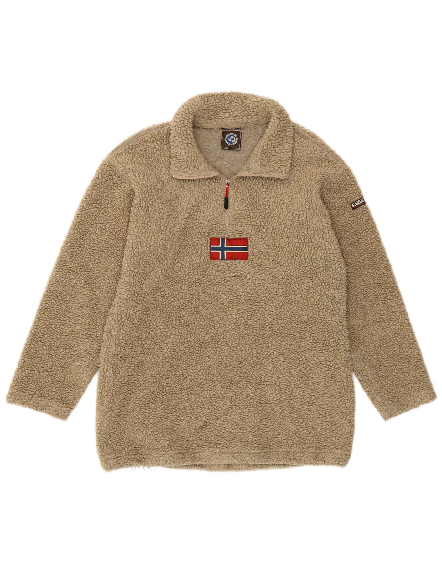 Suéter de lã feminino Napapijri com gola e zíper, grande bege poliacrílico