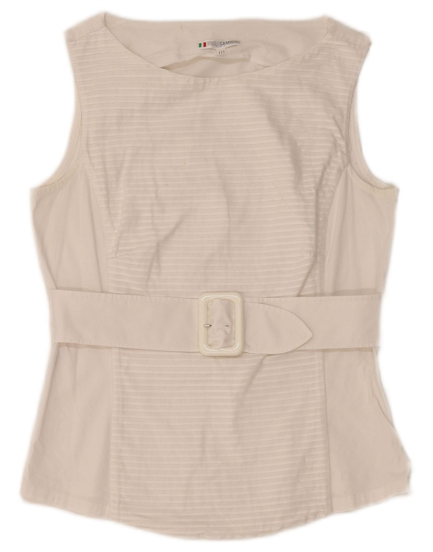 Blusa feminina sem mangas NARACAMICIE Reino Unido 8 pequenas listras brancas de algodão