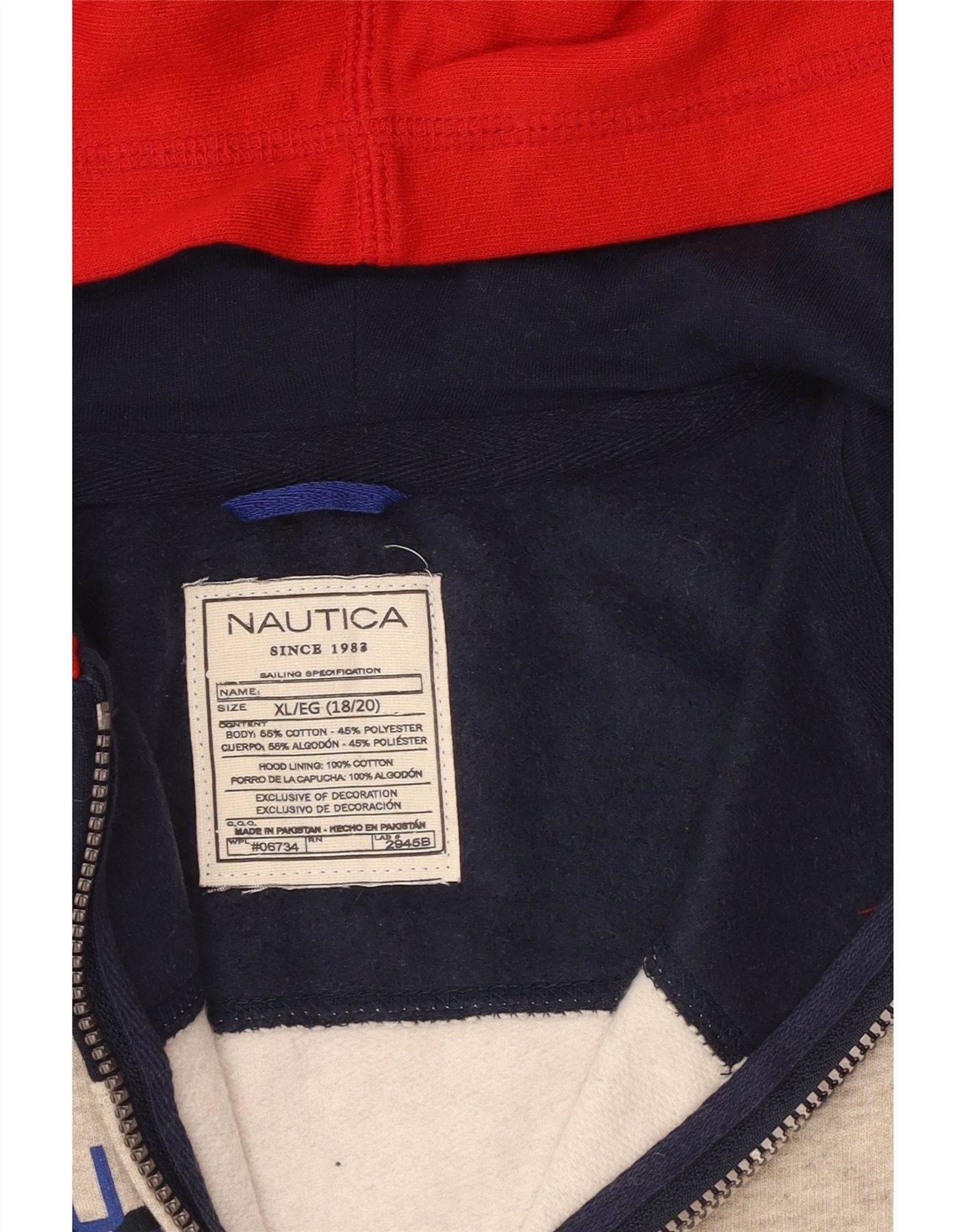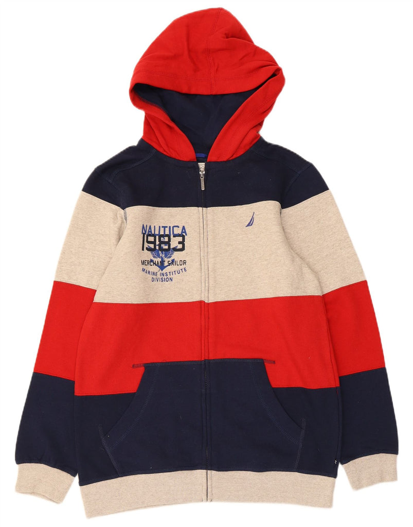 NAUTICA Boys Zip Hoodie Sweater 13-14 Years XL Multicoloured Colourblock
