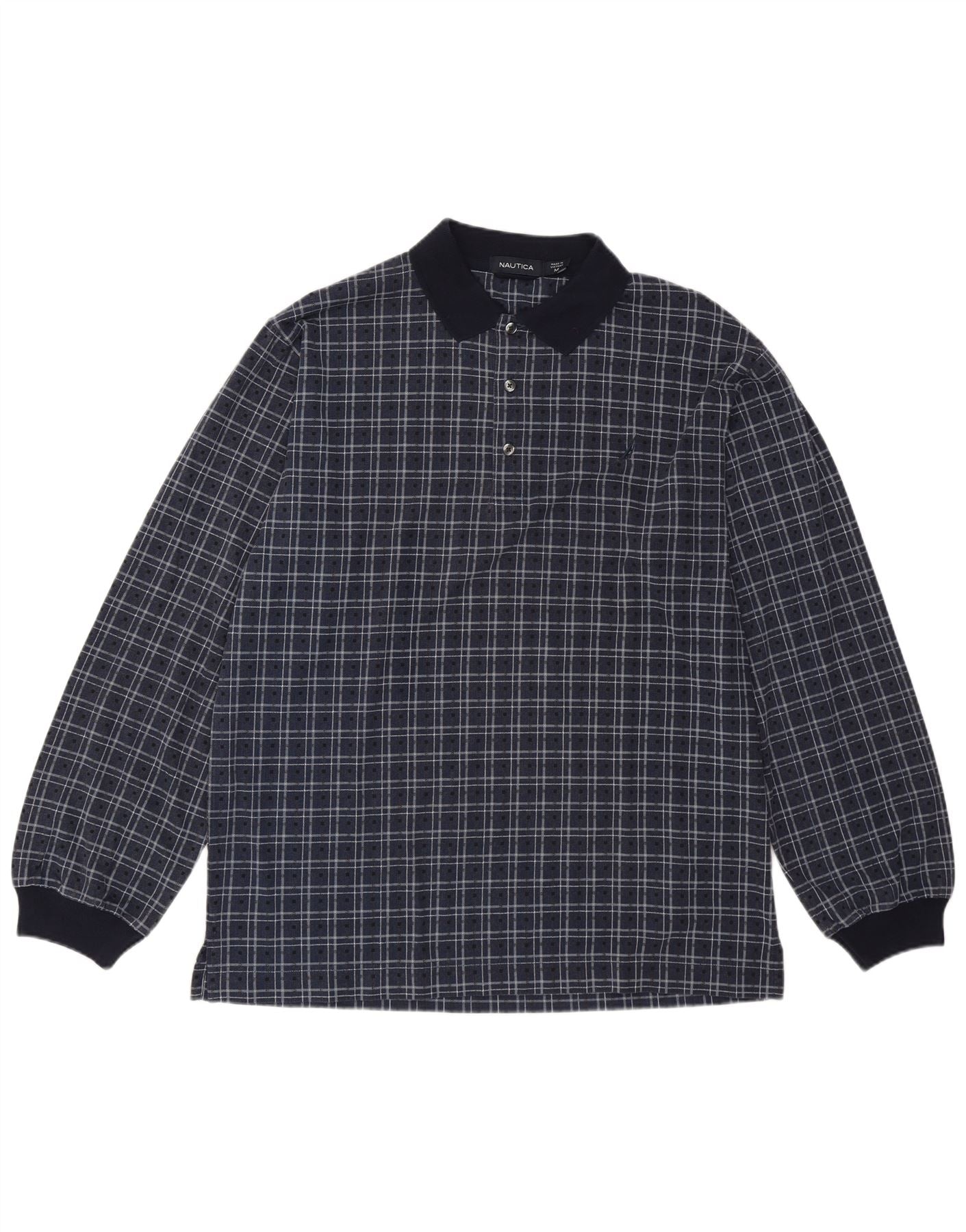 Camisa polo masculina Nautica de manga comprida, algodão xadrez médio azul marinho