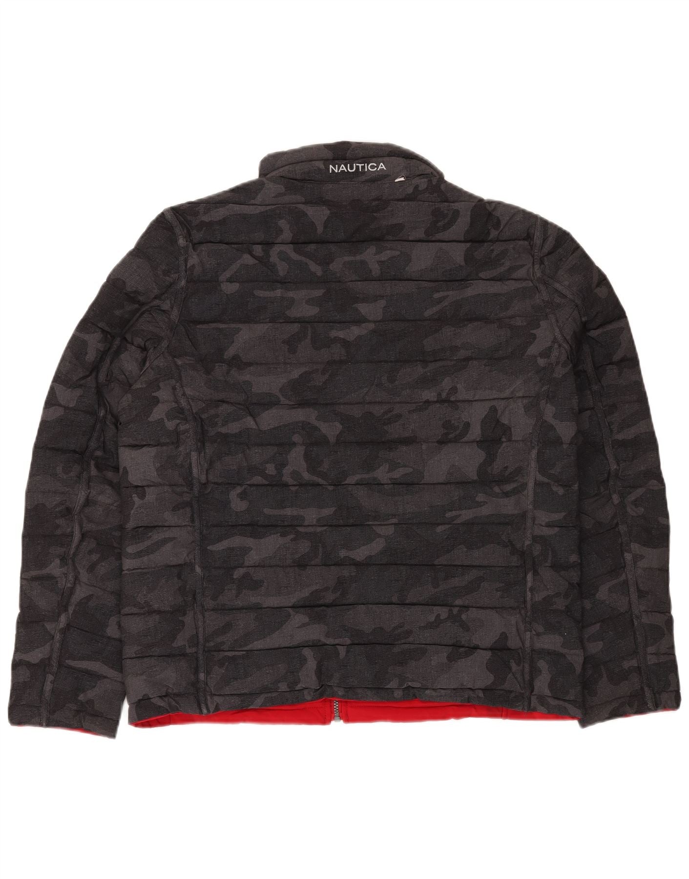 Jaqueta acolchoada reversível masculina NAUTICA UK 40 grande camuflagem preta
