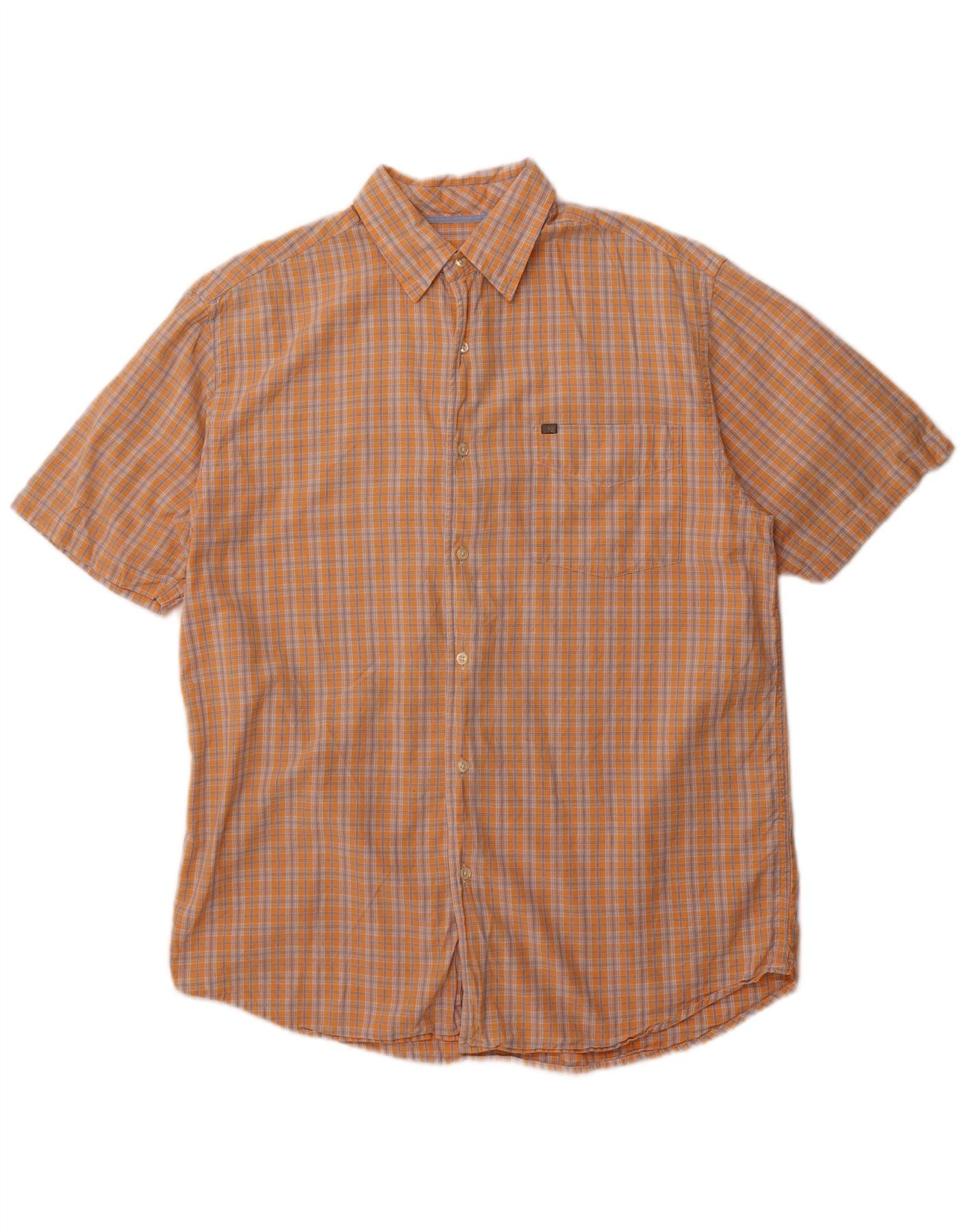 Camisa masculina Nautica de manga curta laranja médio algodão xadrez