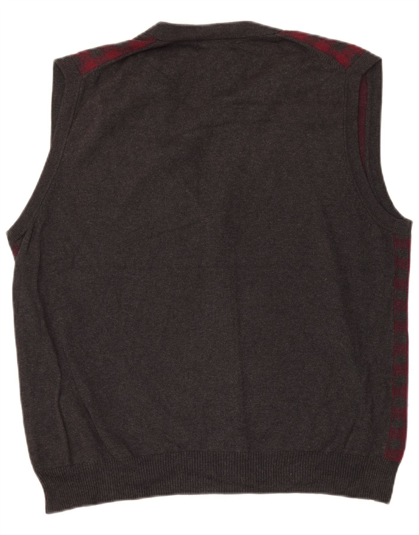 - Descrição da IA: Este colete cardigã masculino Nautica é confeccionado em malha confortável de algodão e lã merino. Possui um padrão xadrez distintivo em bordô e cinza escuro. O decote em V e o design sem mangas oferecem um visual clássico e versátil. Uma frente completa com botões proporciona um fechamento fácil. Seu ajuste regular garante conforto e leveza, perfeito para camadas com estilo formal.