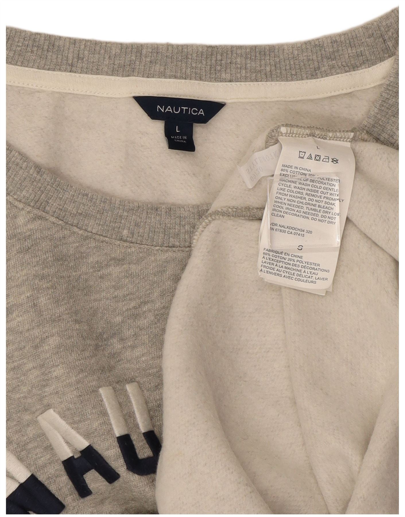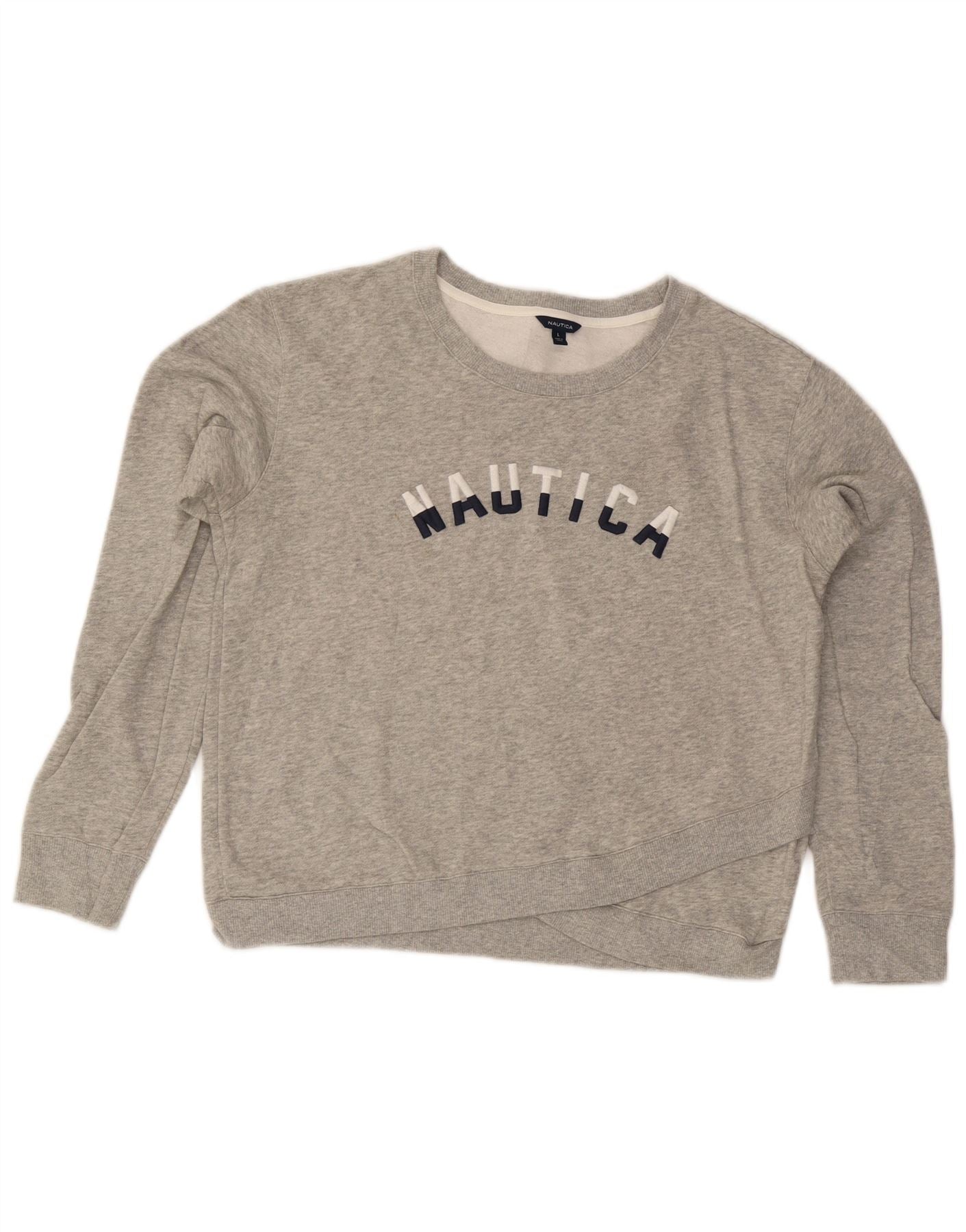 NAUTICA Womens Graphic Sweatshirt Jumper UK 16 Large Grey Flecked Cotton