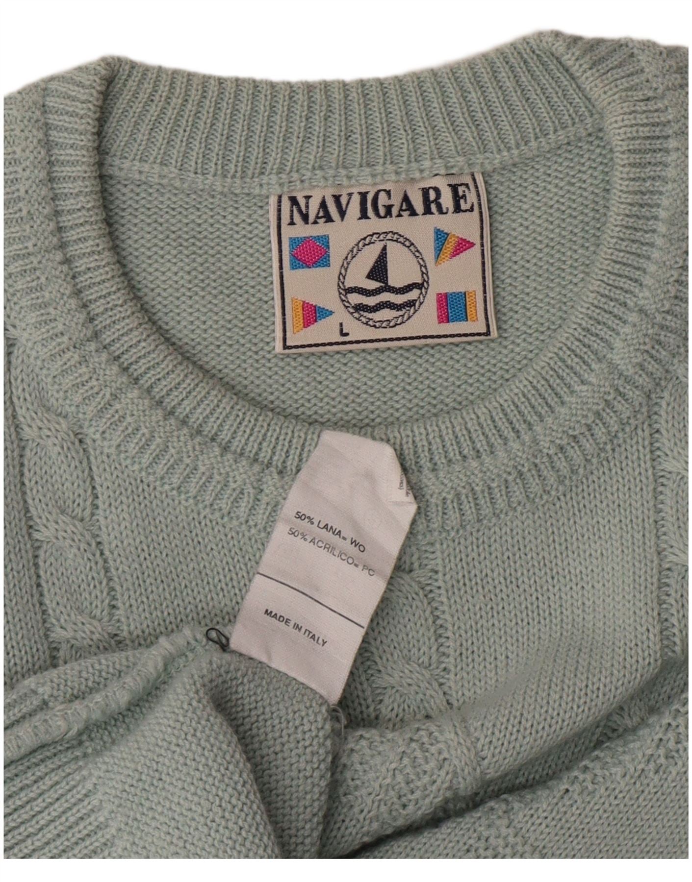Suéter masculino NAVIGARE com gola redonda, grande verde Argyle/Diamond Classic