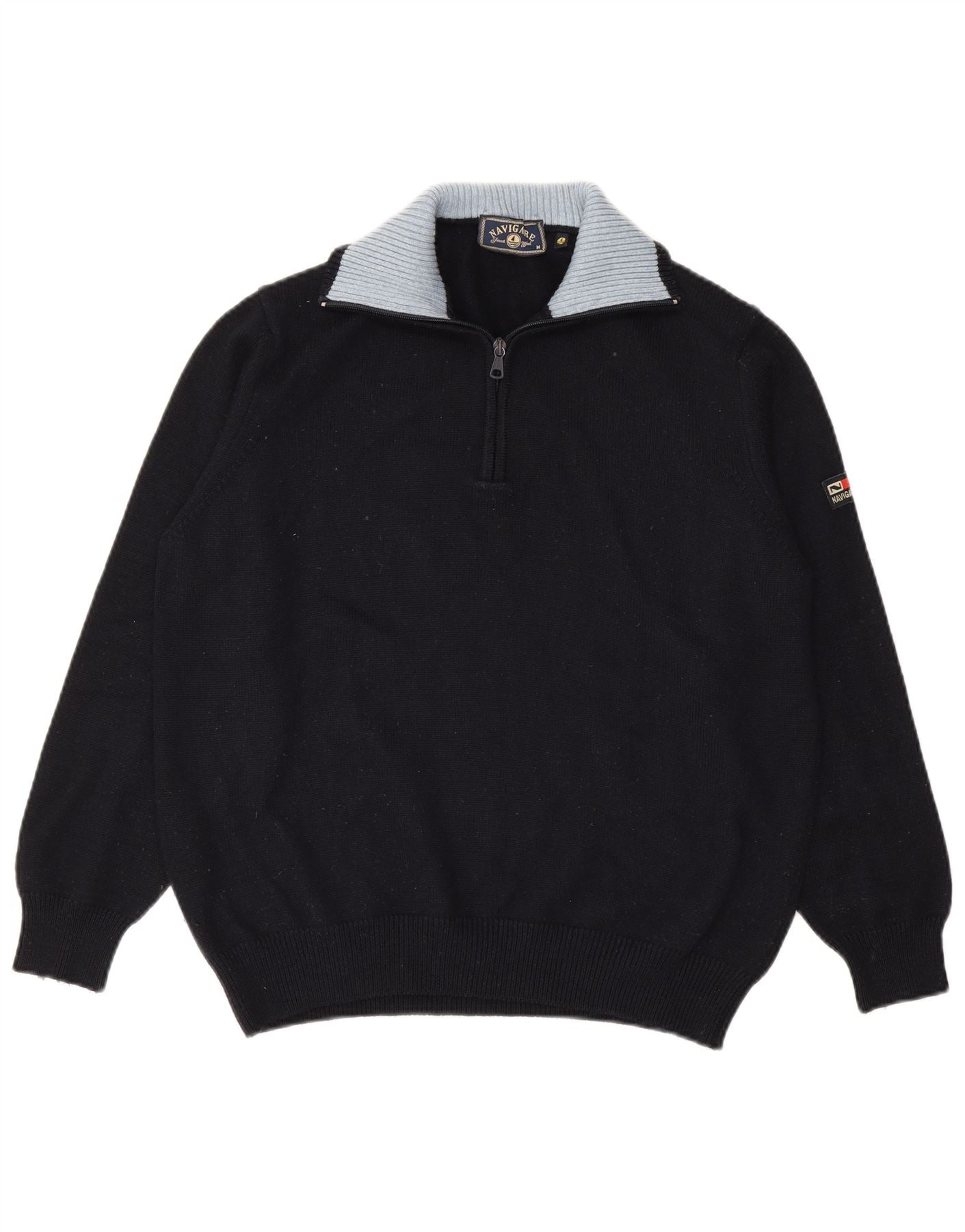 Suéter masculino NAVIGARE com gola e zíper, lã Merino azul marinho médio