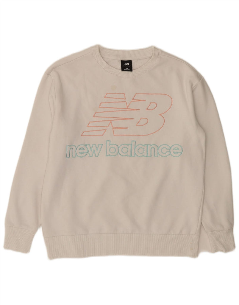 NEW BALANCE Womens Loose Fit Graphic Sweatshirt Jumper UK 6 XS White