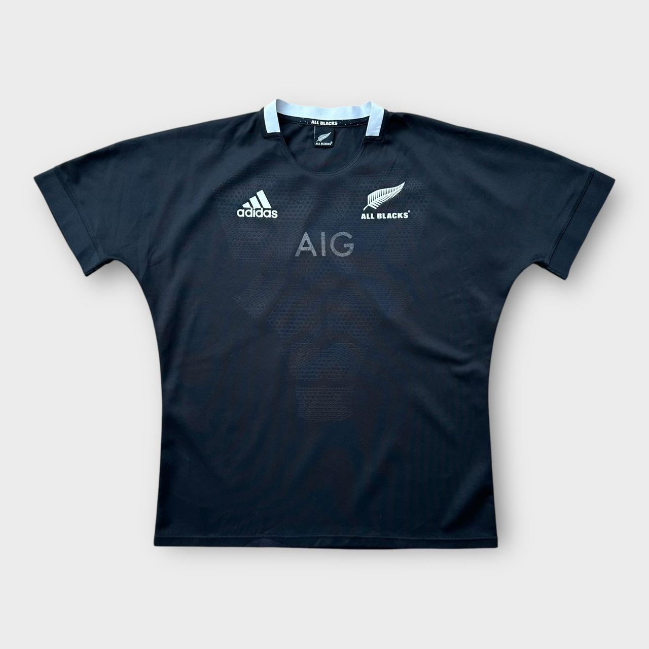 Top de rugby da Nova Zelândia 2018 da adidas em preto com logotipos e patrocinador AIG no peito