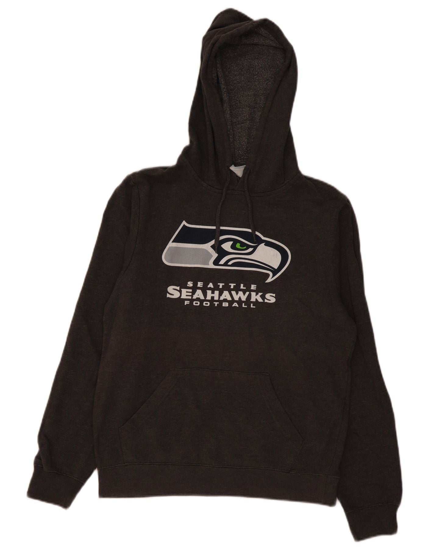 - Descrição da IA: Este moletom com capuz masculino da NFL Team Apparel é feito de lã cinza suave para aquecimento e conforto. Apresenta um design clássico com capuz e mangas compridas. O estilo pulôver oferece fácil desgaste. Um ajuste regular garante movimentos confortáveis. A frente exibe orgulhosamente o logotipo do Seattle Seahawks. Um prático bolso canguru acrescenta funcionalidade.