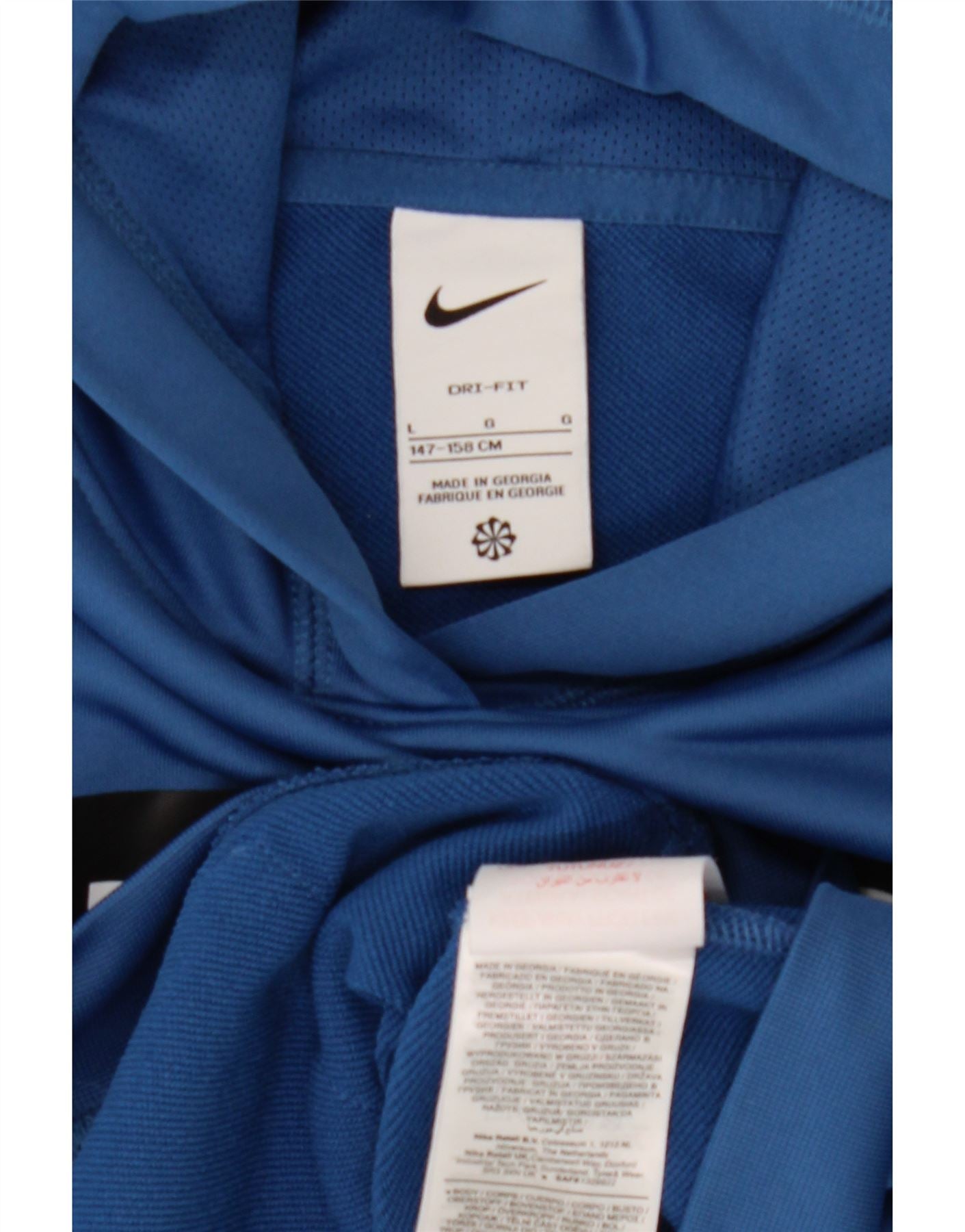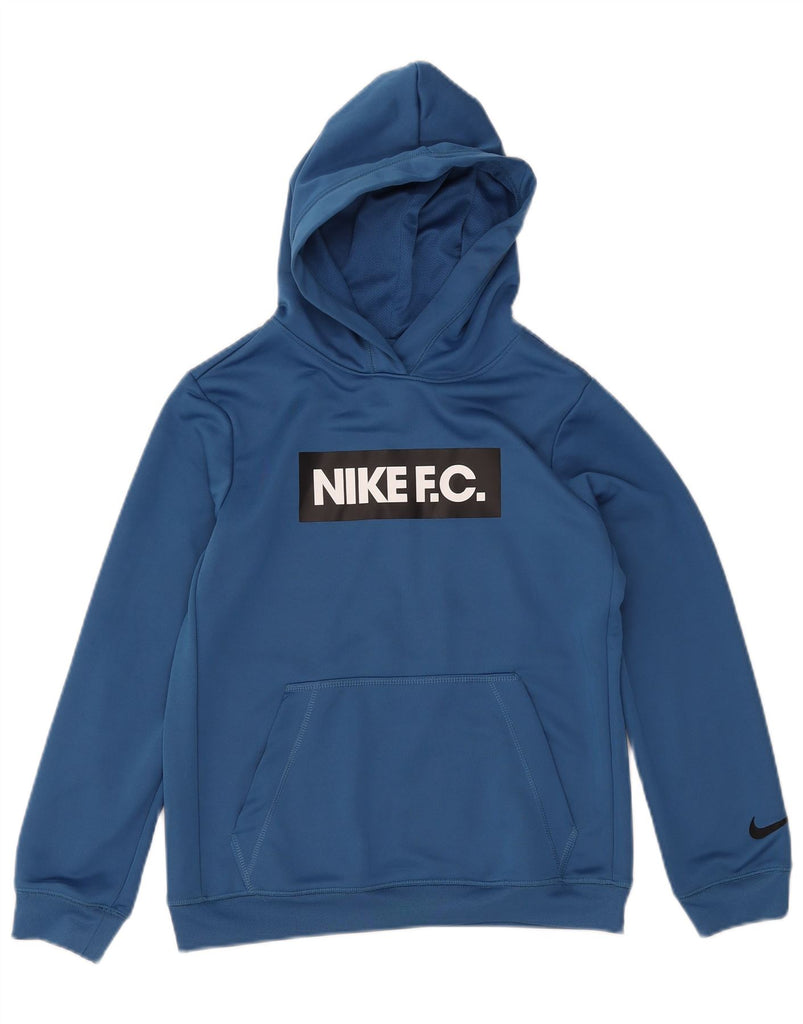 NIKE Boys Dri Fit Graphic Hoodie Jumper 12-13 Years Large Blue Polyester