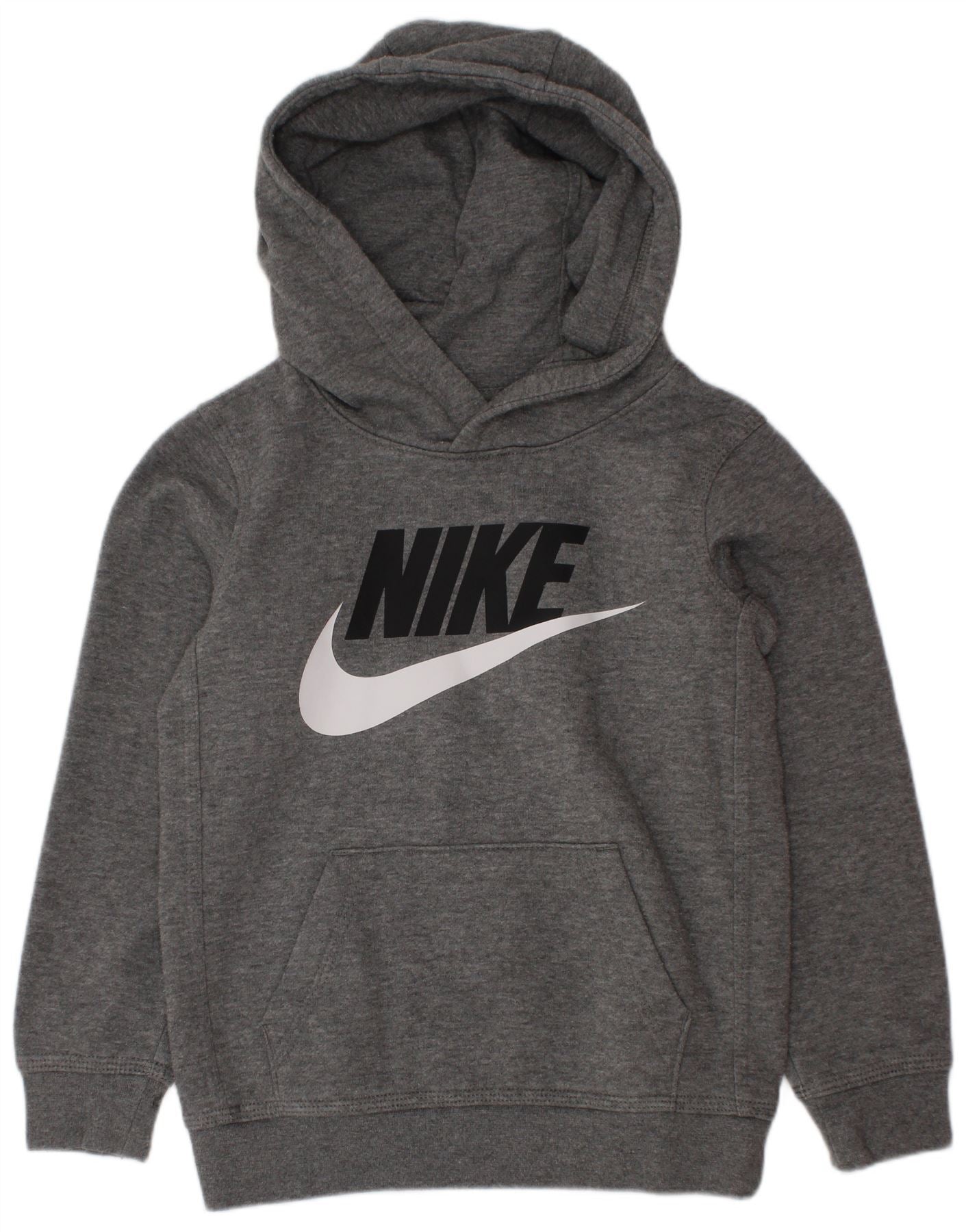 NIKE Boys Graphic Hoodie Jumper 4-5 anos pequeno cinza manchado algodão
