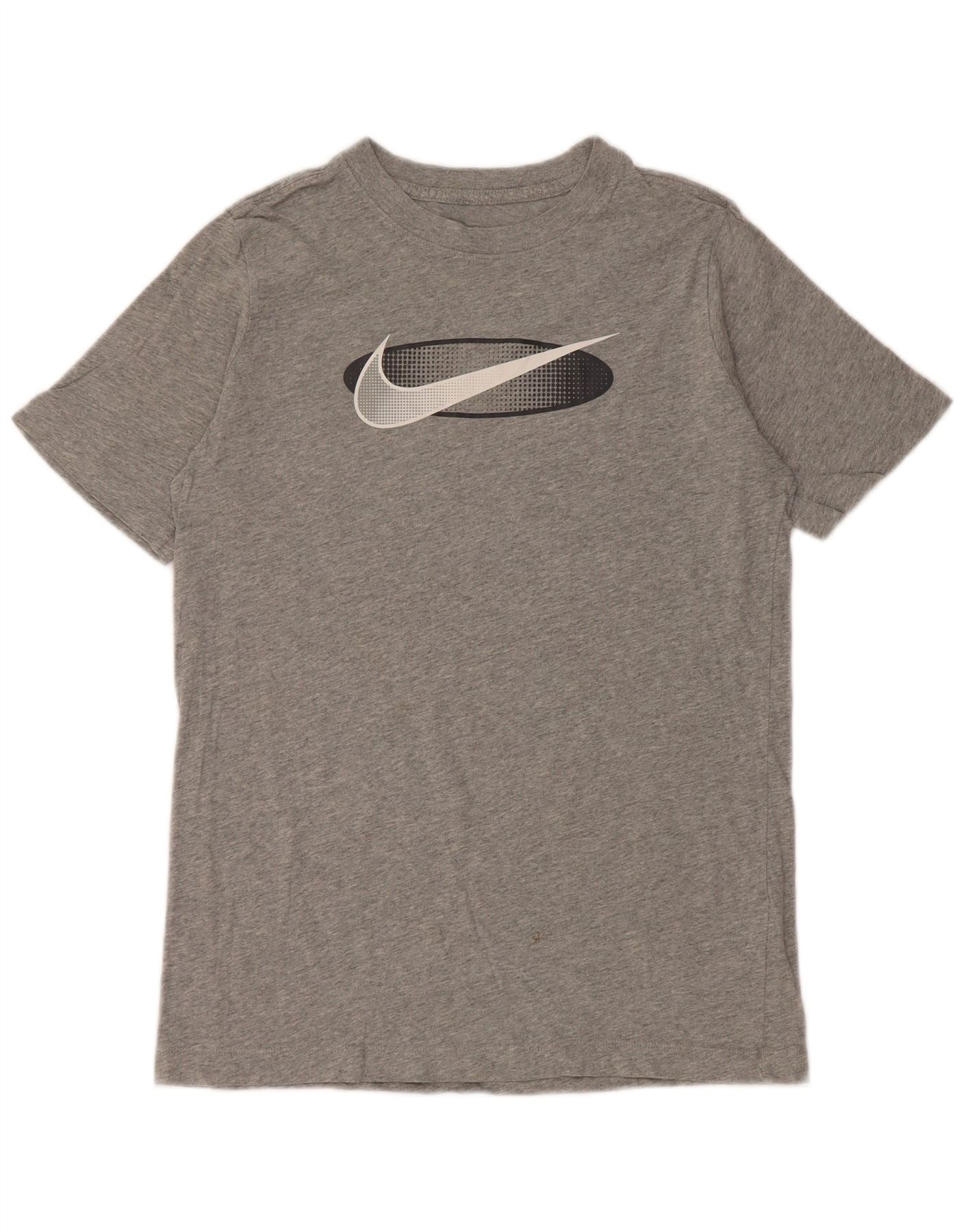 Camiseta gráfica masculina NIKE Top 13-14 anos XL cinza manchado de algodão