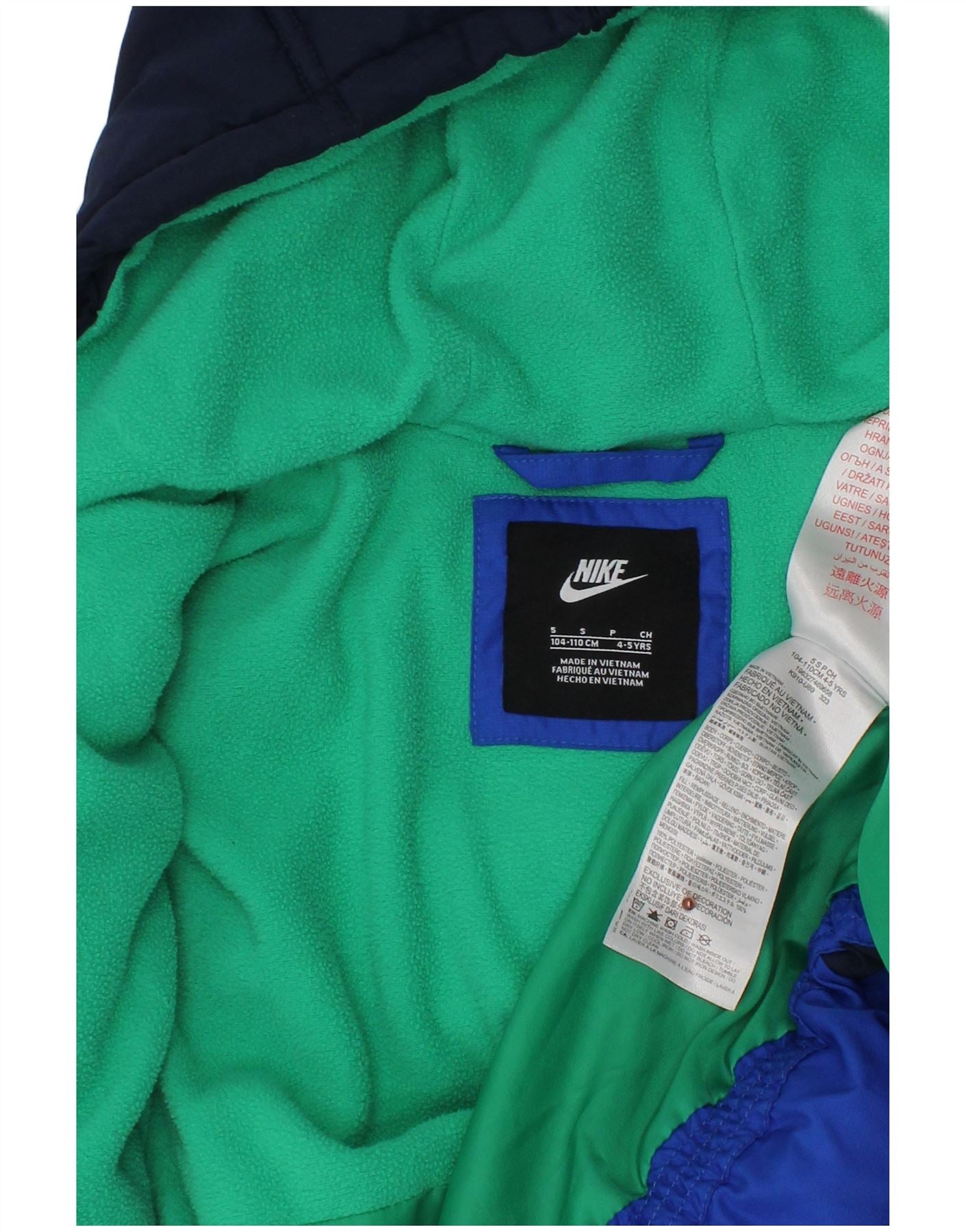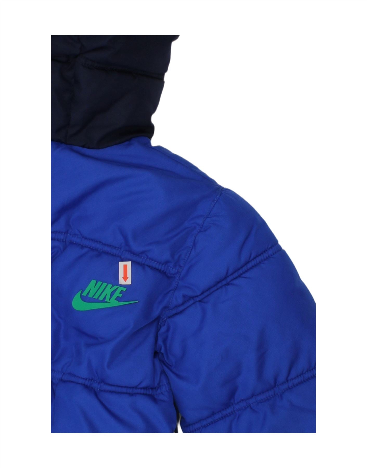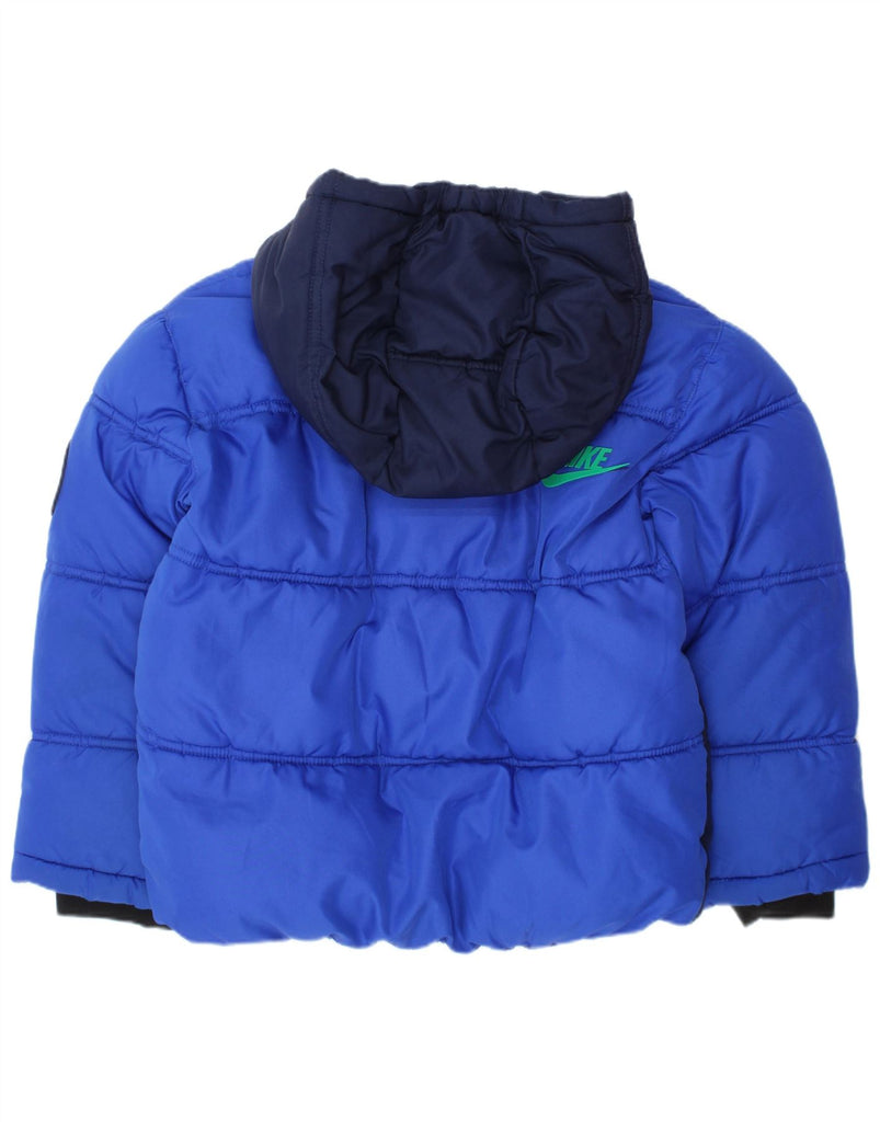 Jaqueta acolchoada com capuz para meninos NIKE 4-5 anos pequeno azul colorblock poliéster
