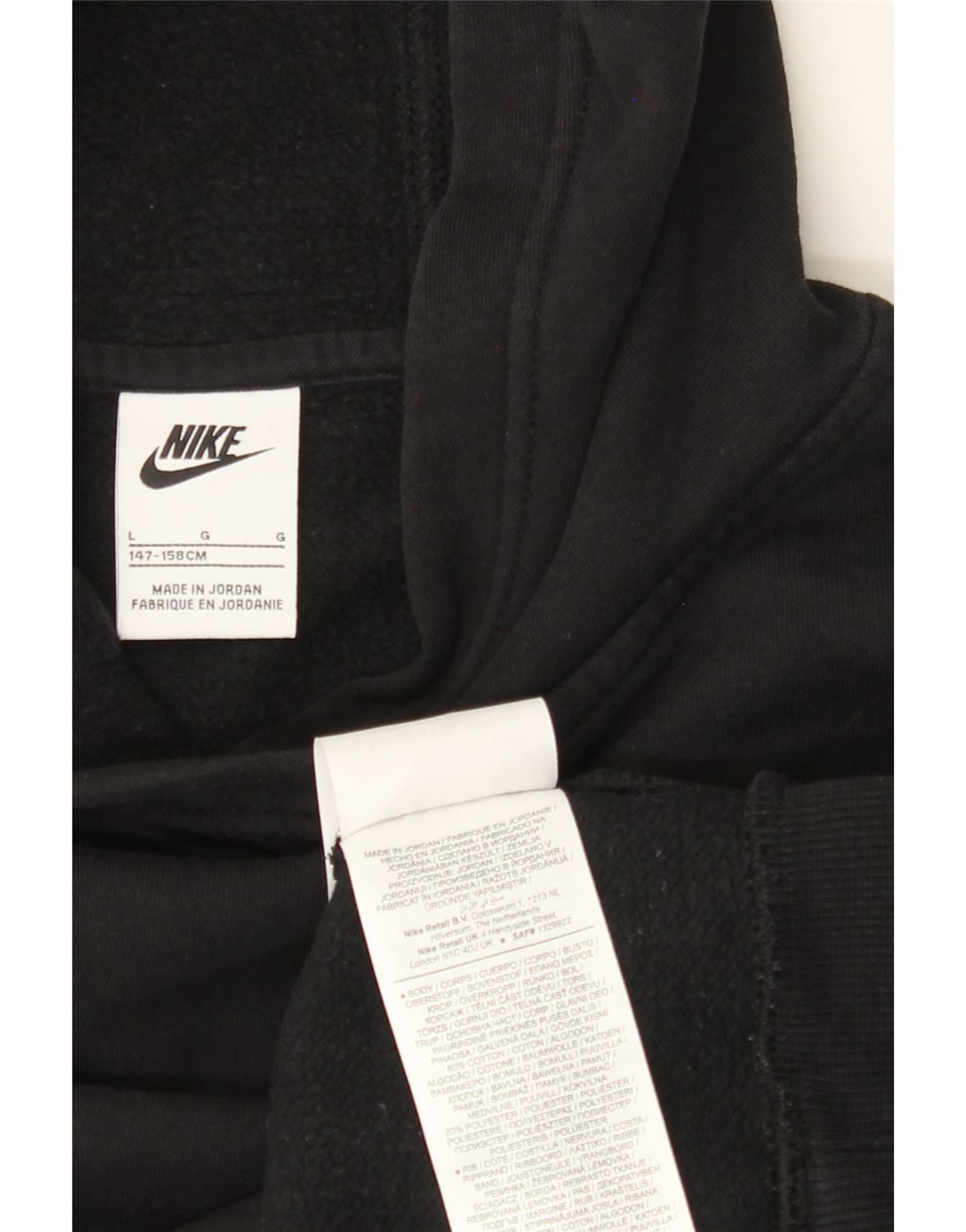 NIKE Meninos moletom com capuz 12-13 anos grande algodão preto