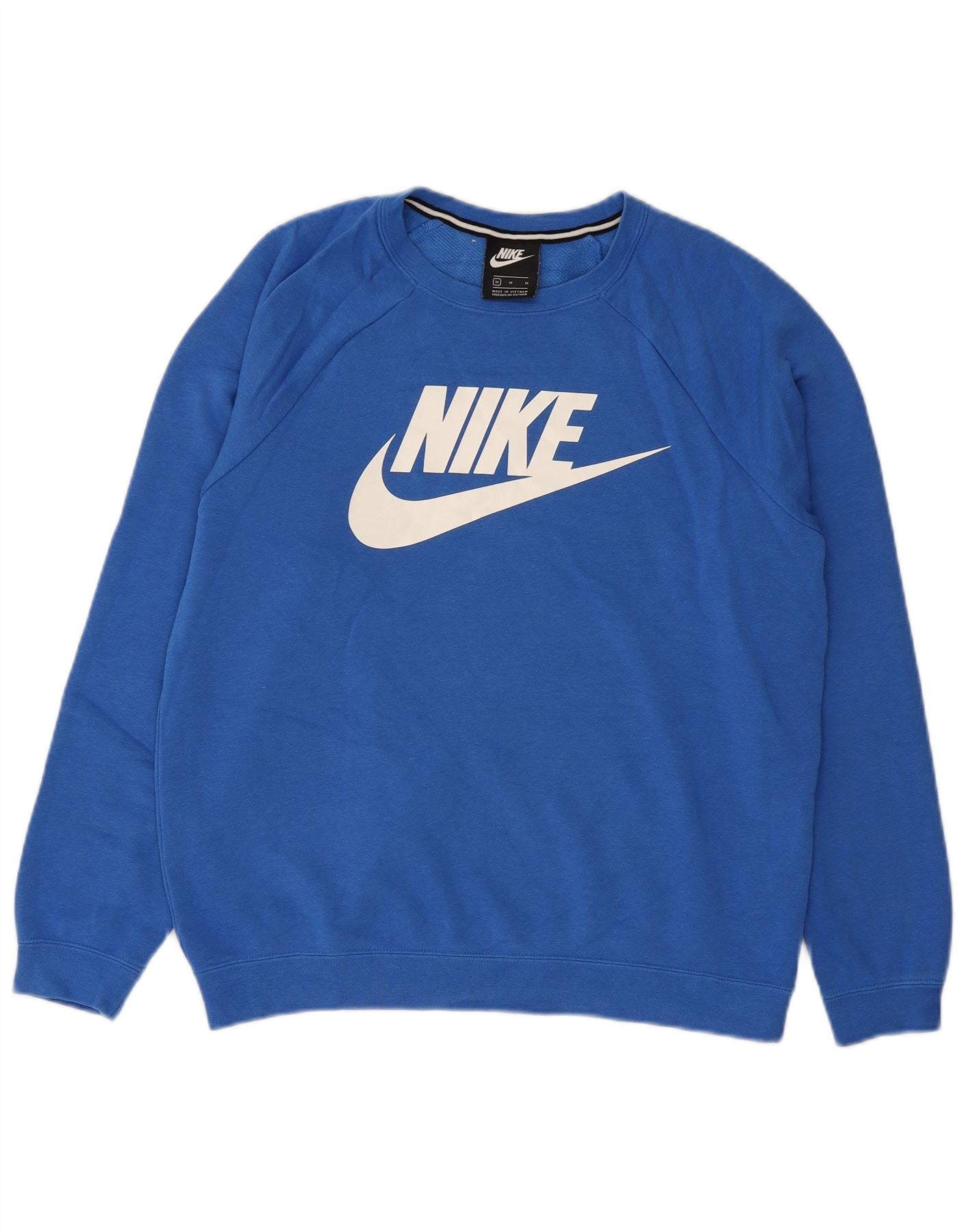 NIKE feminino gráfico moletom jumper UK 14 médio azul algodão