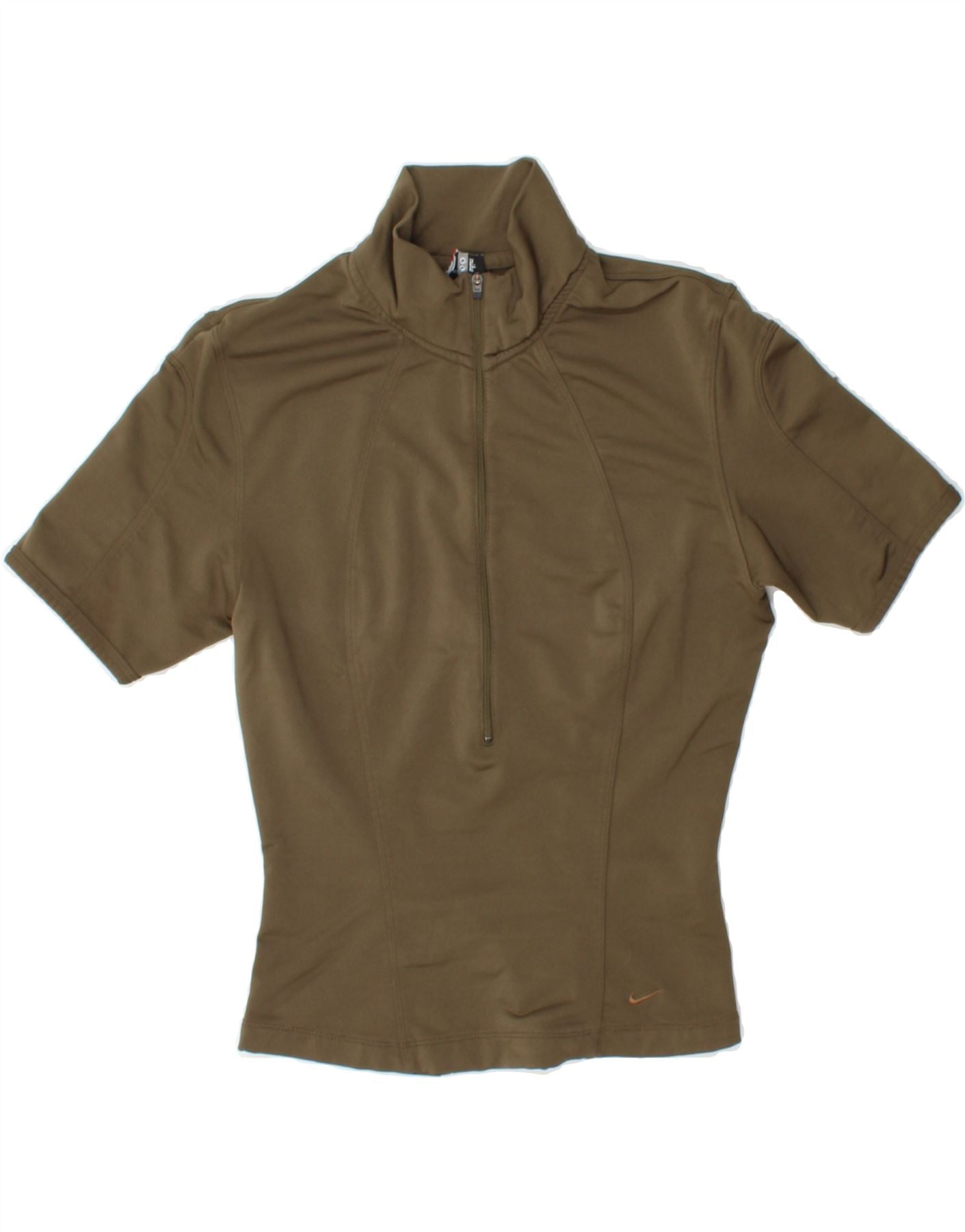 NIKE feminino manga curta pulôver agasalho top EUA 8/10 médio cáqui