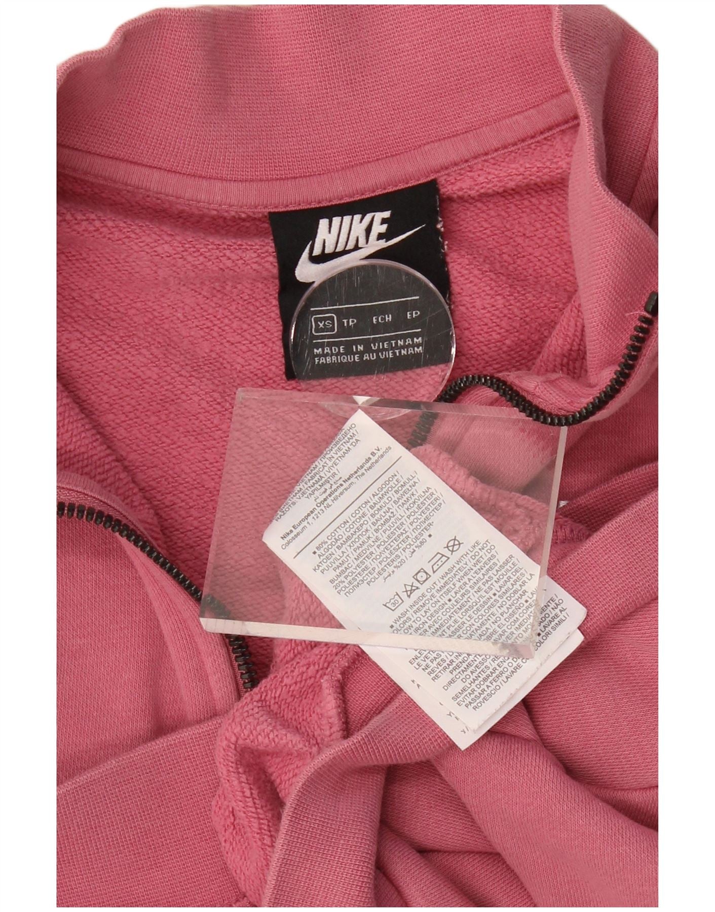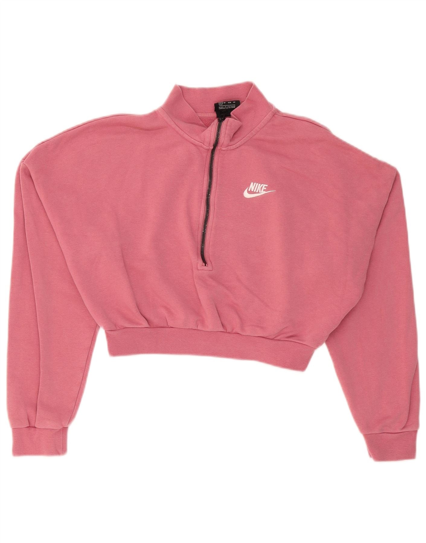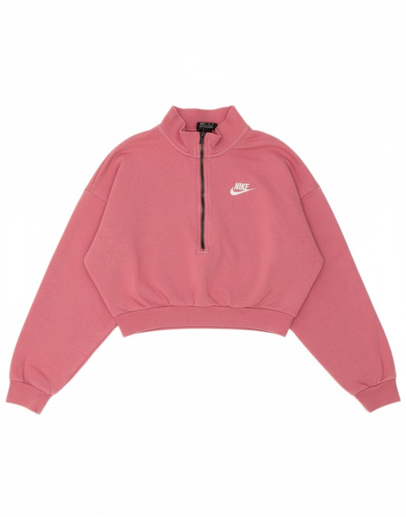NIKE feminino oversized colheita zip pescoço moletom jumper UK 6 XS rosa algodão