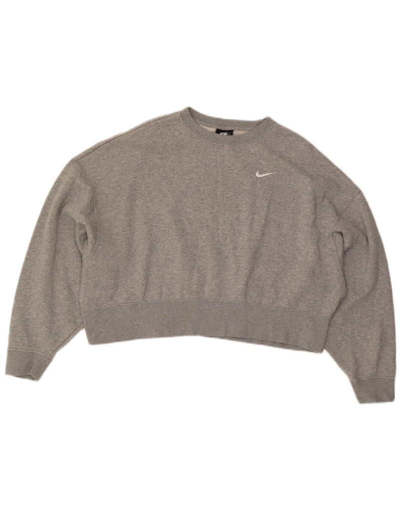 NIKE feminino oversized crop moletom jumper UK 10 pequeno cinza algodão