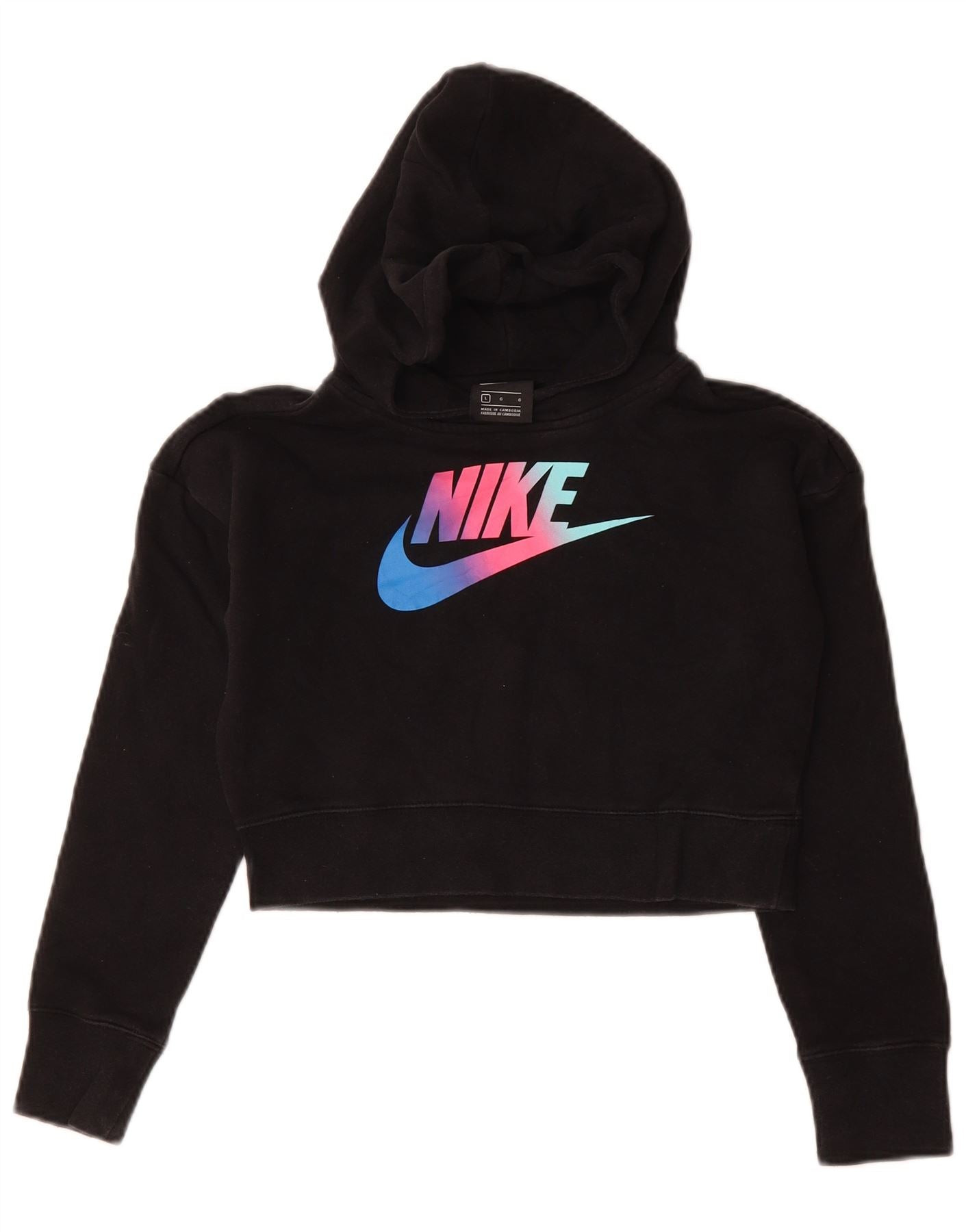 NIKE Girls Crop Graphic Hoodie Jumper 12-13 anos grande algodão preto