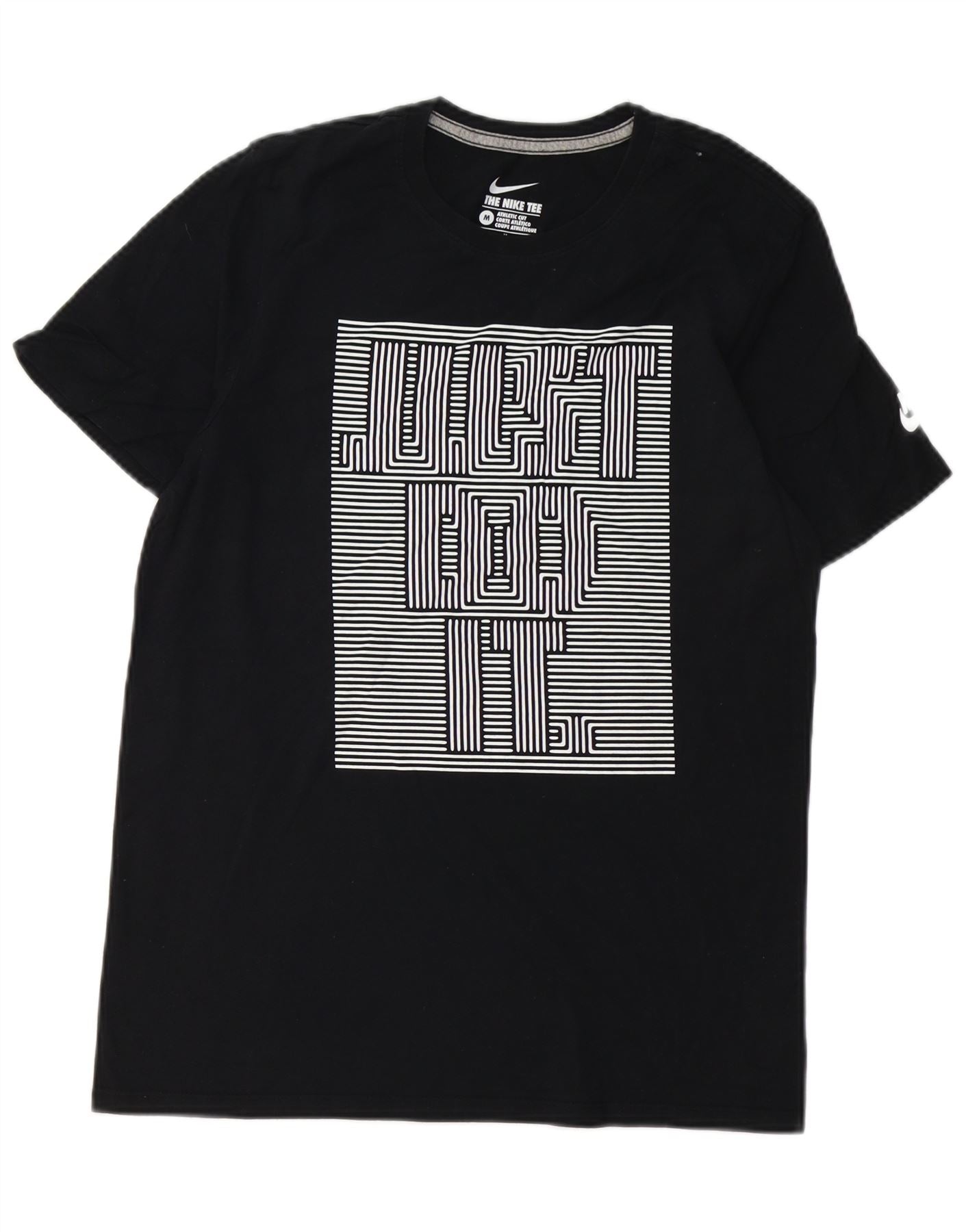 - Descrição da IA: Esta camiseta gráfica masculina da Nike é confeccionada em tecido jersey preto macio. Possui gola redonda clássica e mangas curtas. O corte atlético garante um ajuste confortável e regular. Um impressionante padrão geométrico adorna a frente, acrescentando interesse visual. O design é completado com um sutil detalhe do logotipo da Nike. Este pulôver é respirável e leve, ideal para esportes ou uso casual.