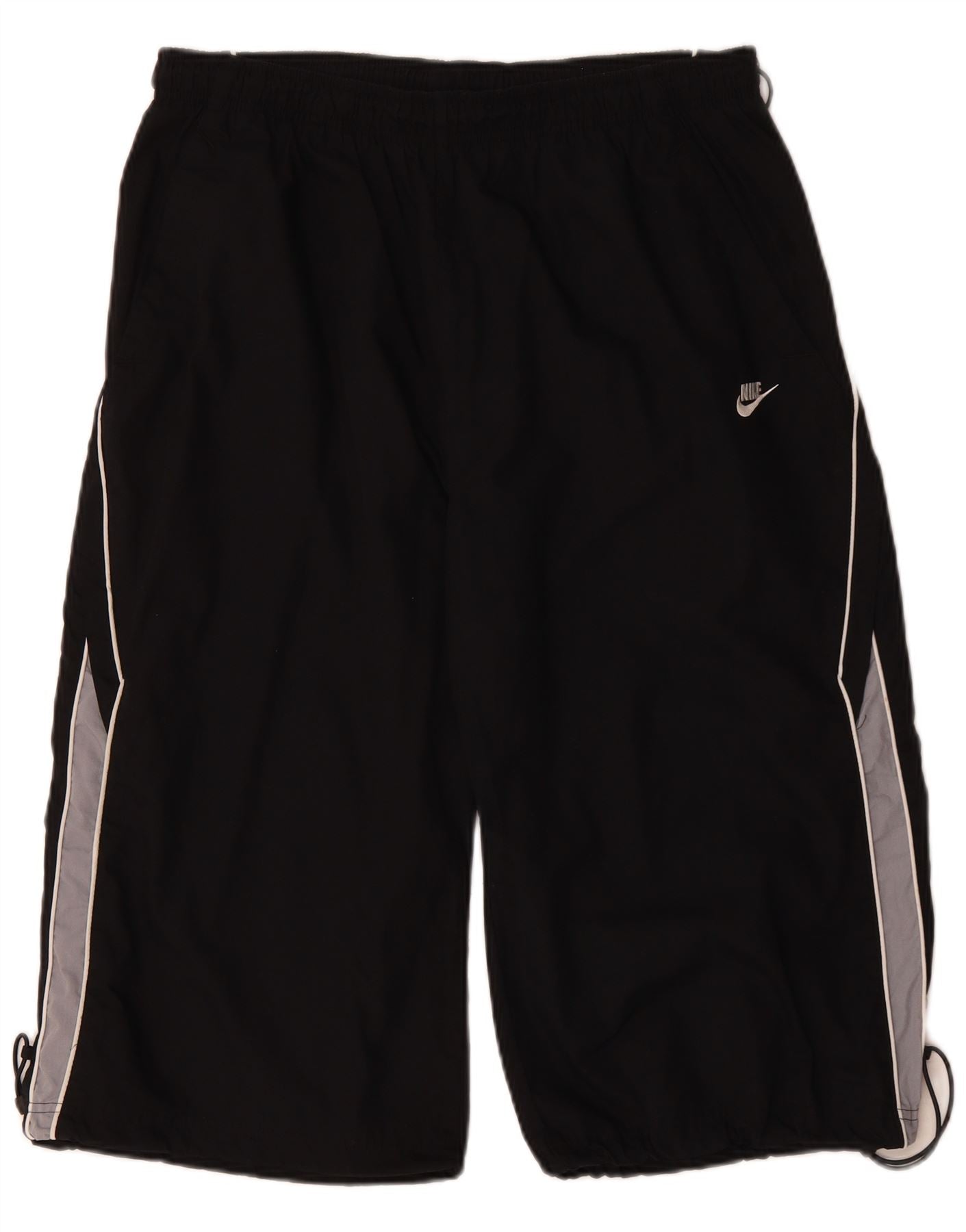 - Descrição da IA: Este short masculino da Nike é feito de poliéster leve preto. O estilo pull-on apresenta uma cintura elástica para um ajuste confortável e descontraído. Bolsos laterais oferecem armazenamento prático. Listras brancas e cinza percorrem as laterais, adicionando um detalhe esportivo. Um logotipo sutil da Nike está presente. O corte relaxado garante facilidade de movimento.