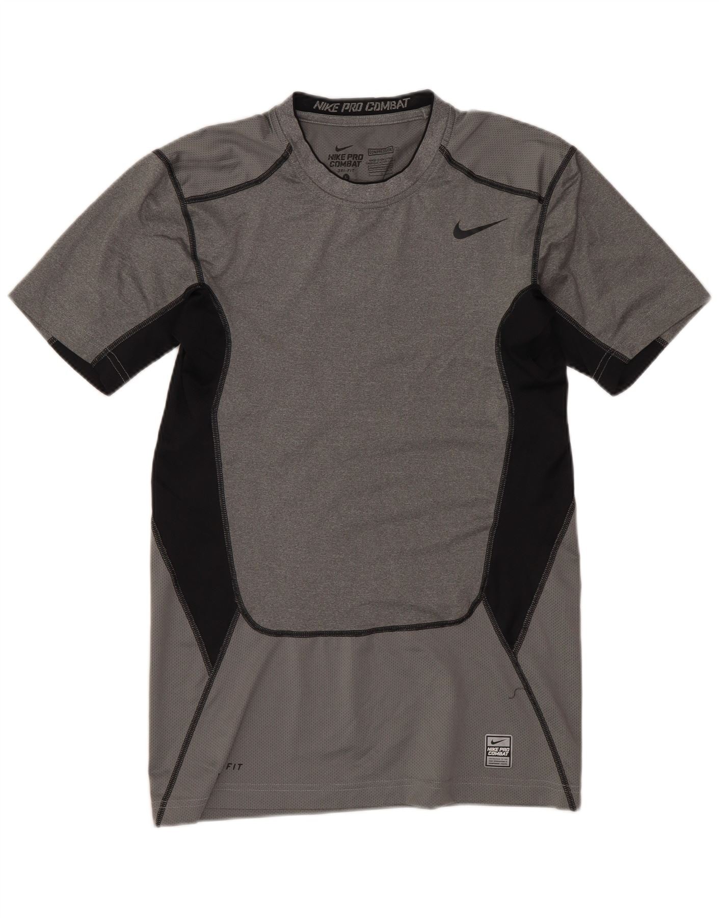 - Descrição da IA: Esta camiseta masculina da Nike é confeccionada em tecido mesclado cinza e conta com a tecnologia Nike Dri-Fit para desempenho. Oferece uma textura respirável e elástica. A gola redonda e as mangas curtas proporcionam uma silhueta atlética clássica. Seu ajuste fino garante uma sensação próxima e de suporte. Os painéis coloridos pretos realçam o design dinâmico, complementando o icônico logotipo da Nike. Este top é ideal para esportes e treinamento.