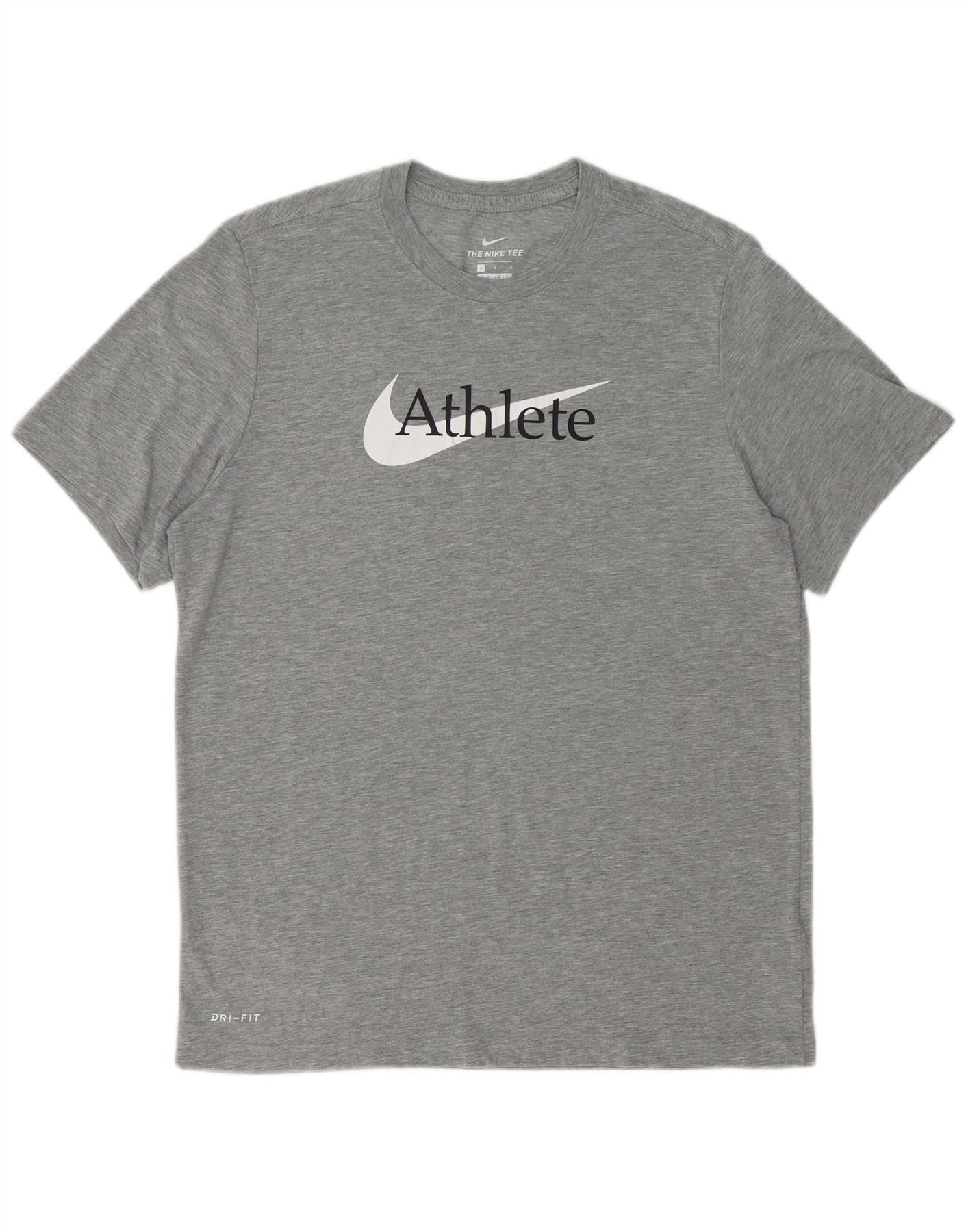 Camiseta masculina NIKE Dri Fit Graphic grande poliéster cinza
