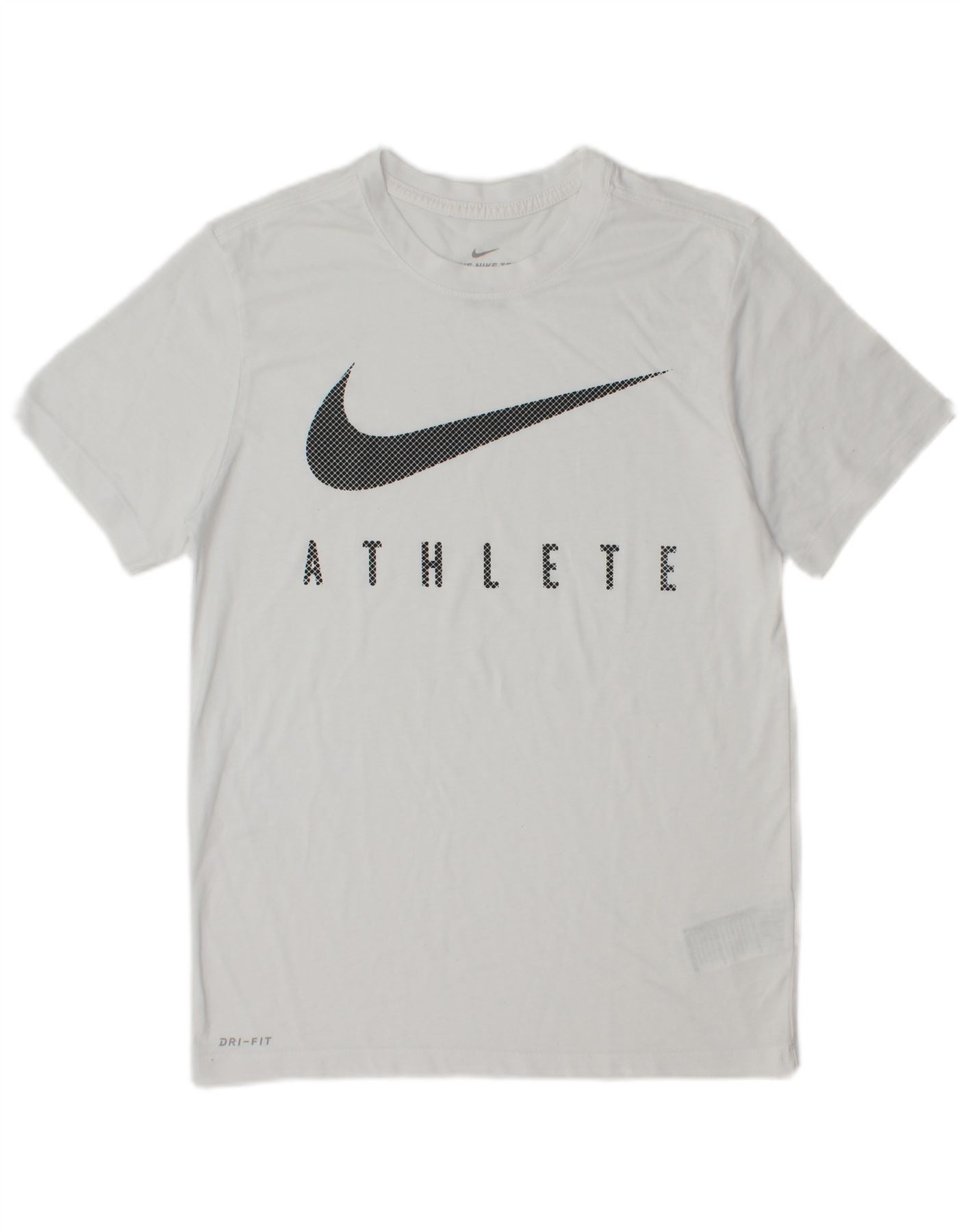 - Descrição da IA: Esta camiseta gráfica masculina da Nike é feita de um tecido misto branco, composto por 75% de poliéster. Oferece uma textura leve e respirável, ideal para uso ativo. A gola redonda e as mangas curtas proporcionam um corte clássico e atlético. Apresentando a tecnologia Nike Dri-Fit, garante conforto durante o treino. Um ousado logotipo preto da Nike e o texto ATHLETE são exibidos com destaque na frente. Este pulôver oferece um ajuste atlético, perfeito para esportes.