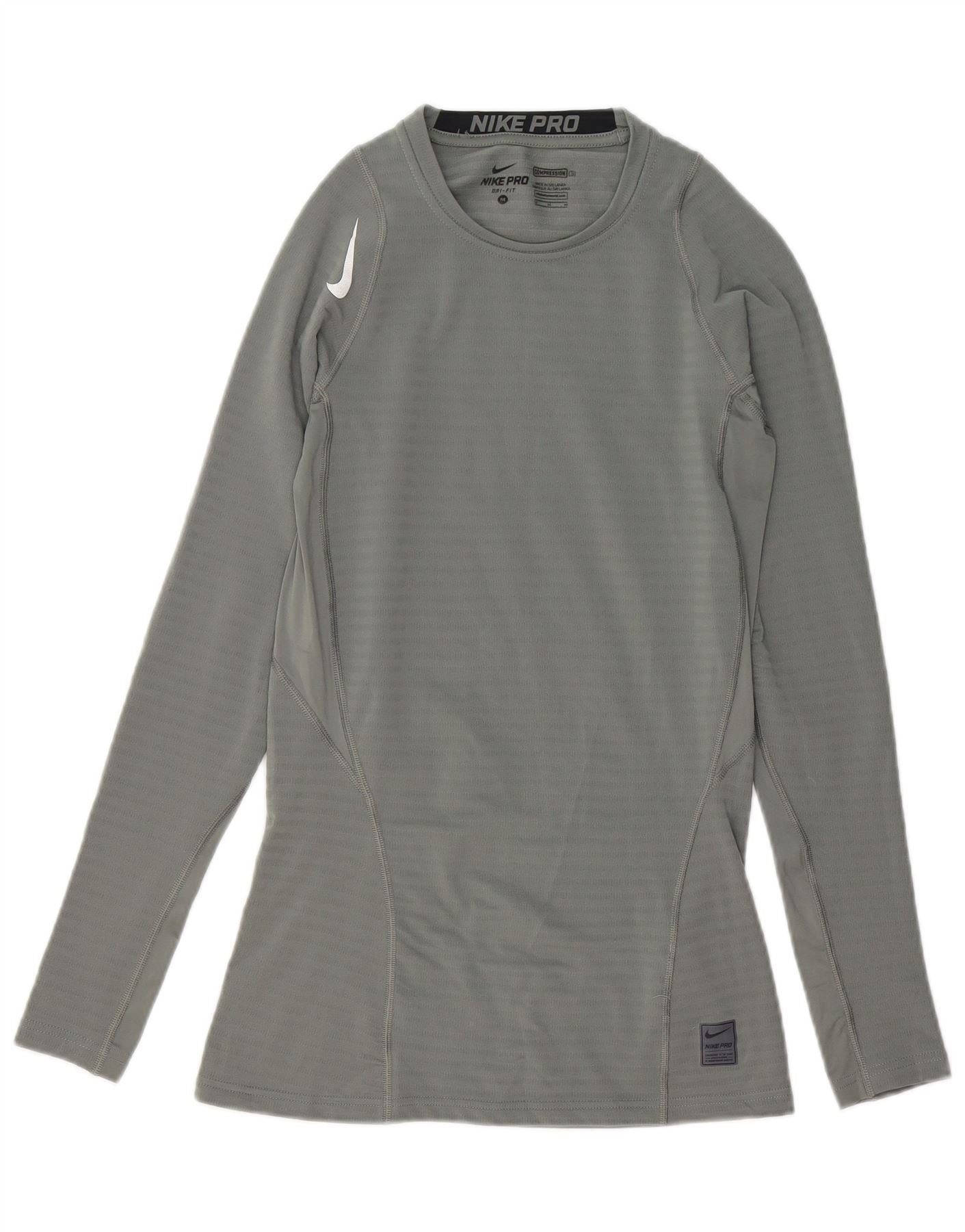 Top gráfico Nike masculino Dri Fit manga comprida UK 14 poliéster cinza médio