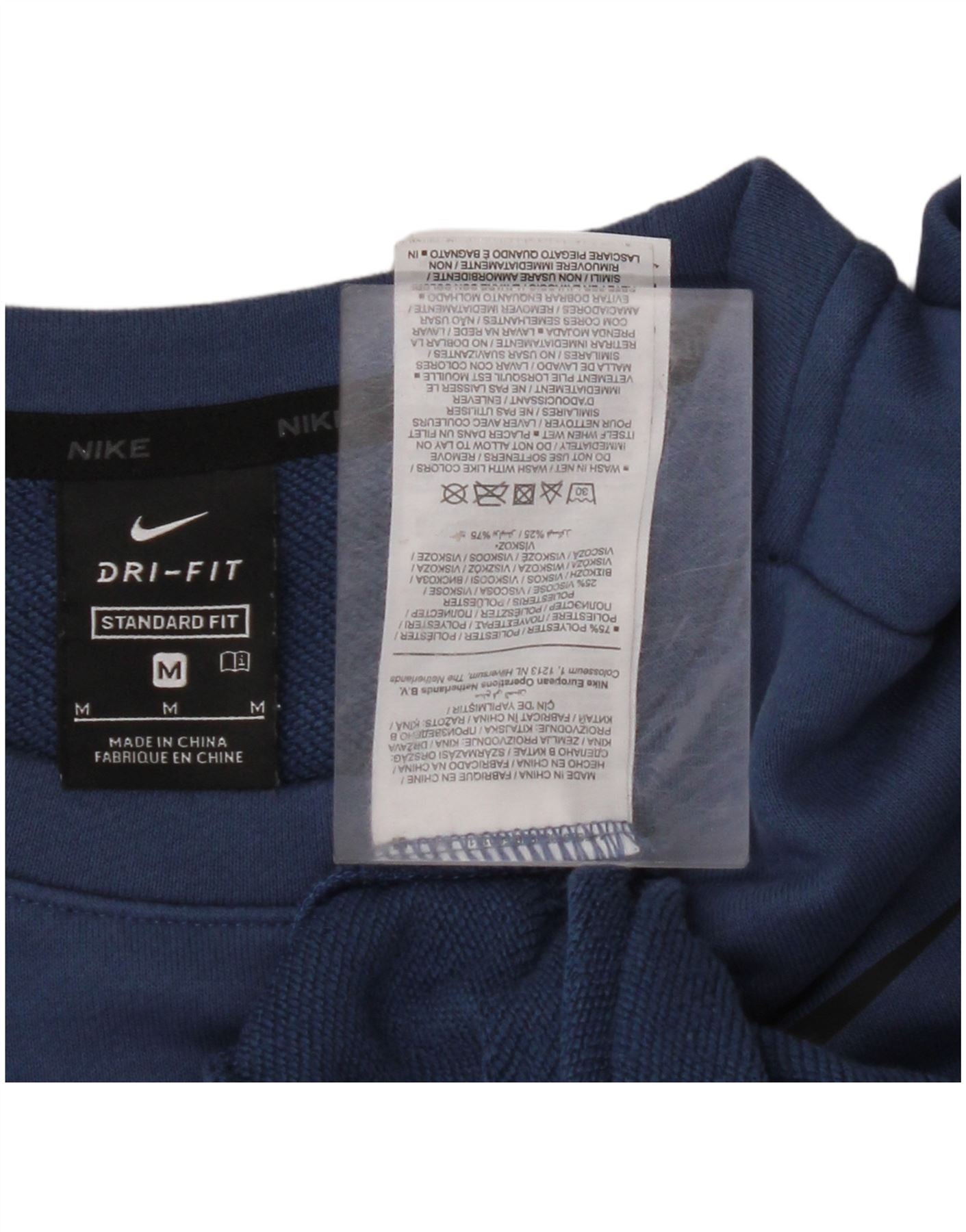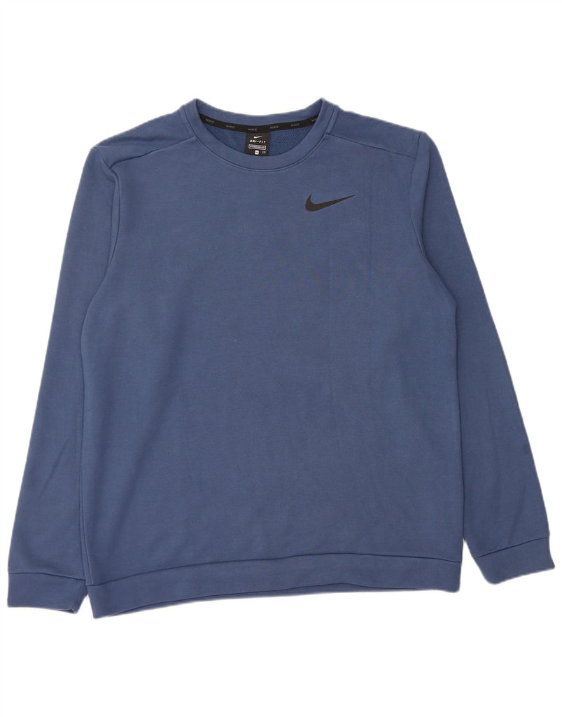 NIKE Mens Dri Fit Standard Fit Sweatshirt Jumper Medium Blue Polyester