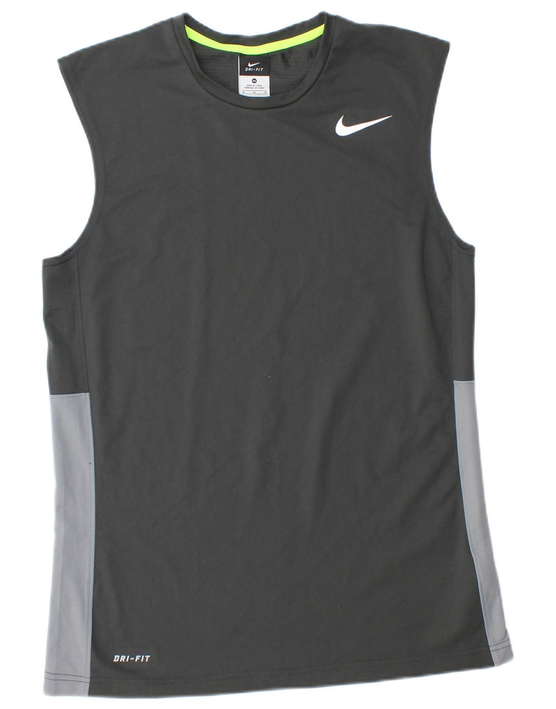 - AI Description: This Nike mens Vest Top is crafted from lightweight 100 percent polyester knit fabric, featuring Nike Dri-Fit technology. It has a round neck and a sleeveless design, perfect for running. The athletic fit ensures comfort and freedom of movement. Breathable and performance-focused, it includes a graphic logo detail. This pullover style offers a clean, modern look for sports activities.
