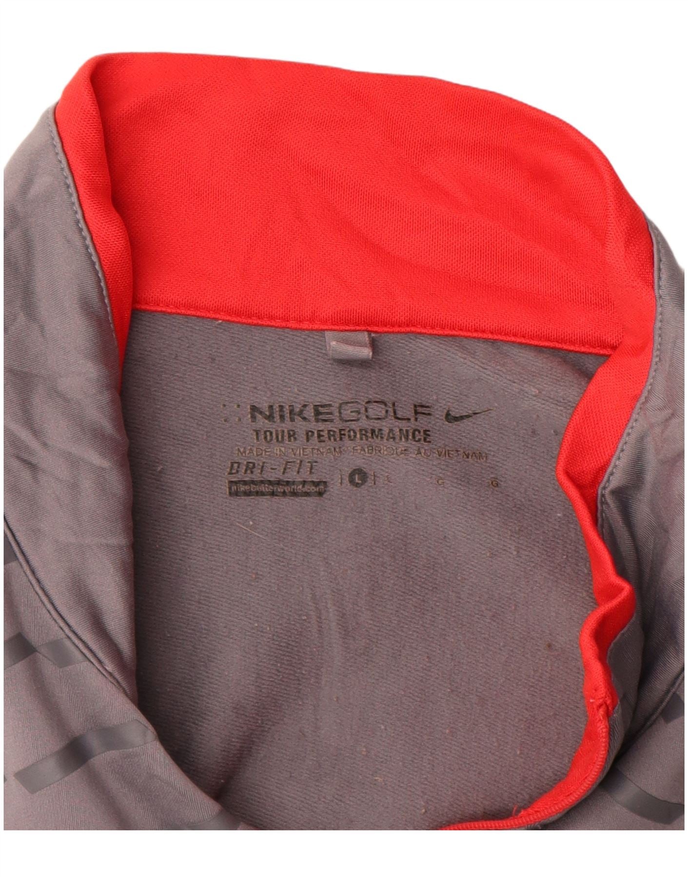- Descrição da IA: Este moletom masculino da Nike é confeccionado em tecido jersey cinza, oferecendo uma sensação respirável e focada no desempenho. Possui gola alta com interior vermelho e fecho de correr 1/4 em vermelho contrastante. A seção superior exibe uma textura padronizada sutil, enquanto a parte inferior do corpo é cinza claro. Mangas compridas e ajuste atlético garantem conforto e movimento para o golfe. Um logotipo vermelho da Nike acentua o peito, completando o design esportivo.