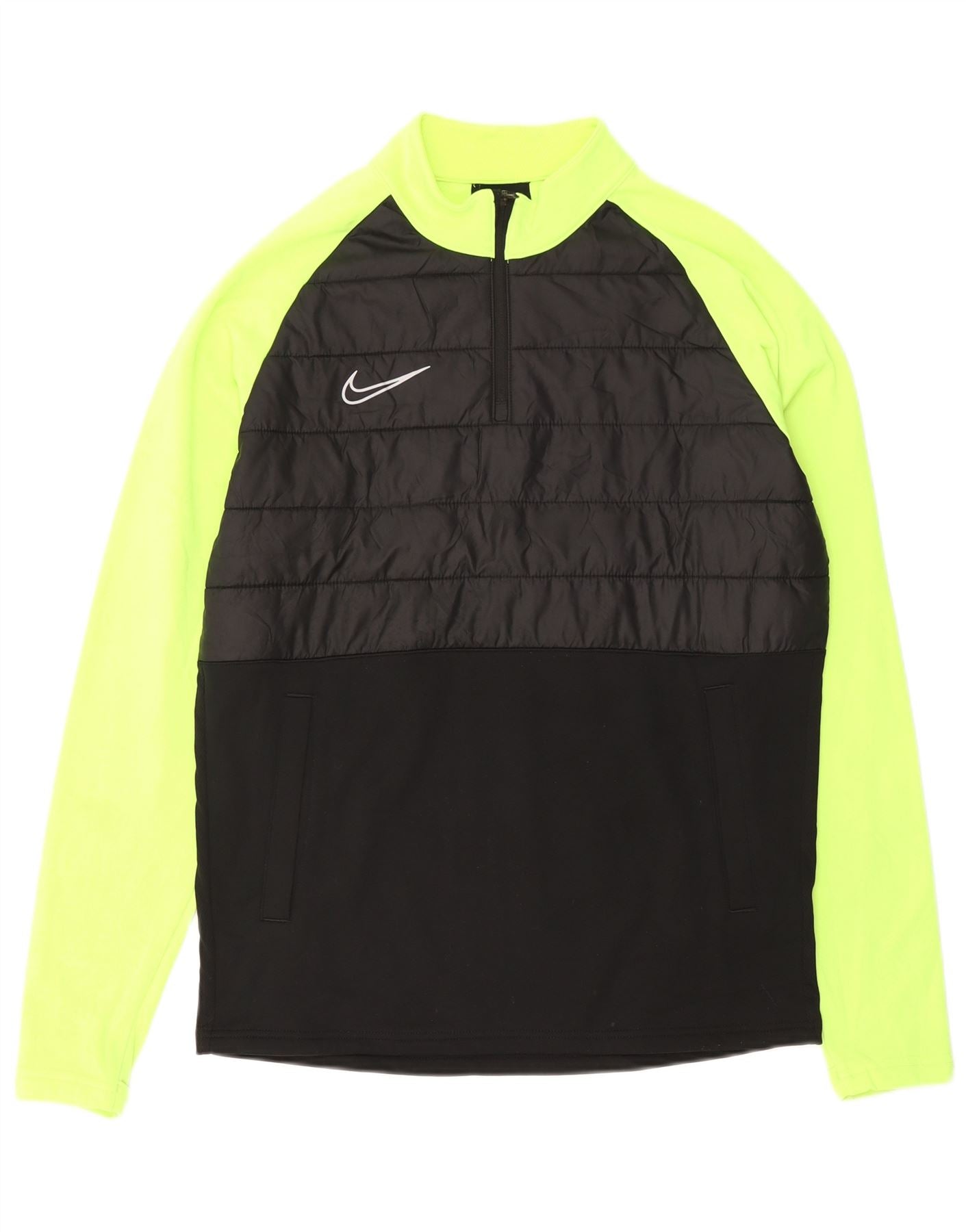 NIKE Masculino Dri Fit Zip Neck Pullover Treino Top Médio Preto Colourblock