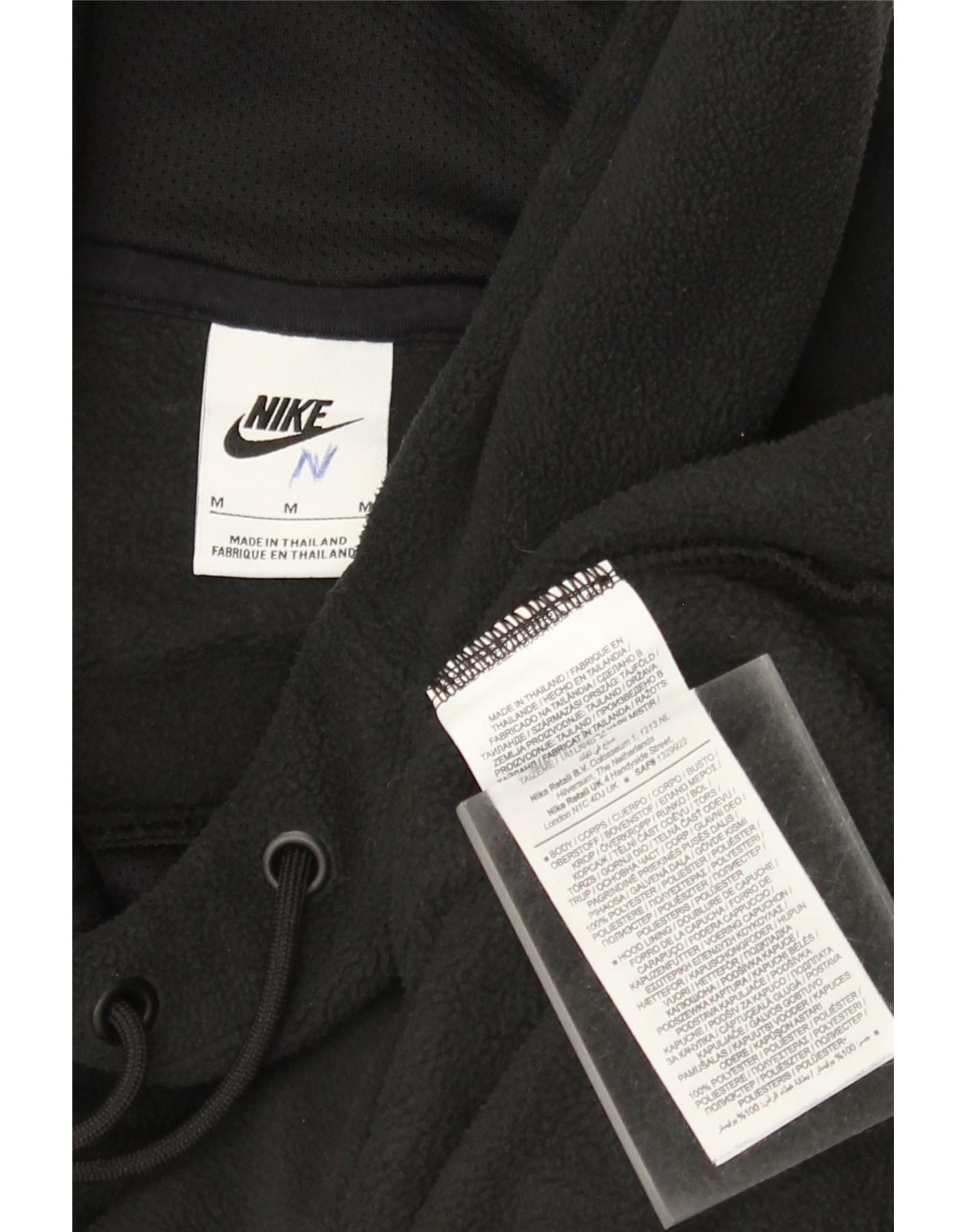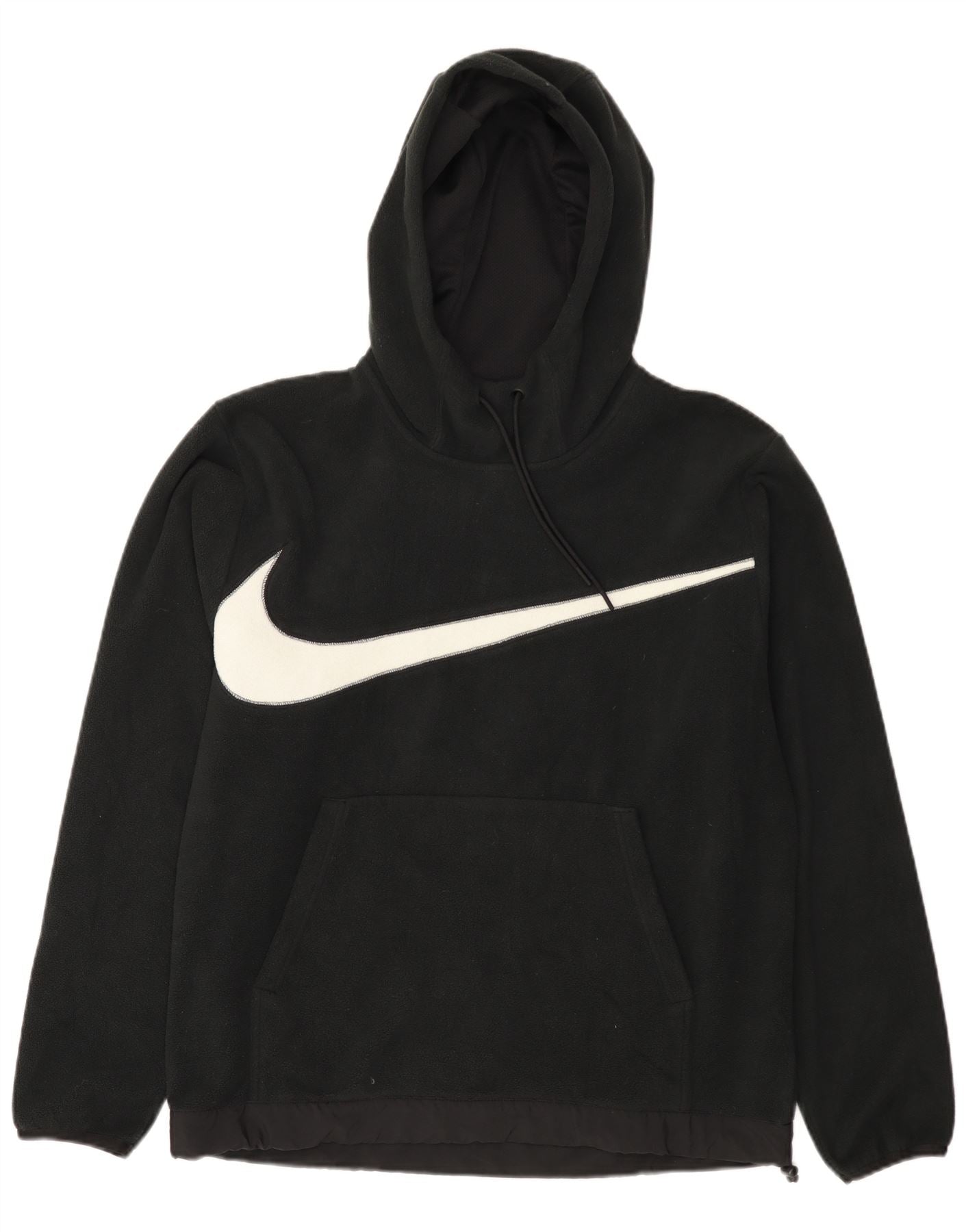 - Descrição da IA: Este moletom com capuz masculino da Nike é feito de lã de poliéster preta macia. Possui um ajuste regular confortável e mangas compridas. O design do pulôver inclui um capuz ajustável para aquecimento. Um prático bolso canguru fica na frente. Um logotipo Nike Swoosh branco proeminente adorna o peito, adicionando um detalhe gráfico ousado. Este estilo esportivo oferece conforto e uma marca icônica.