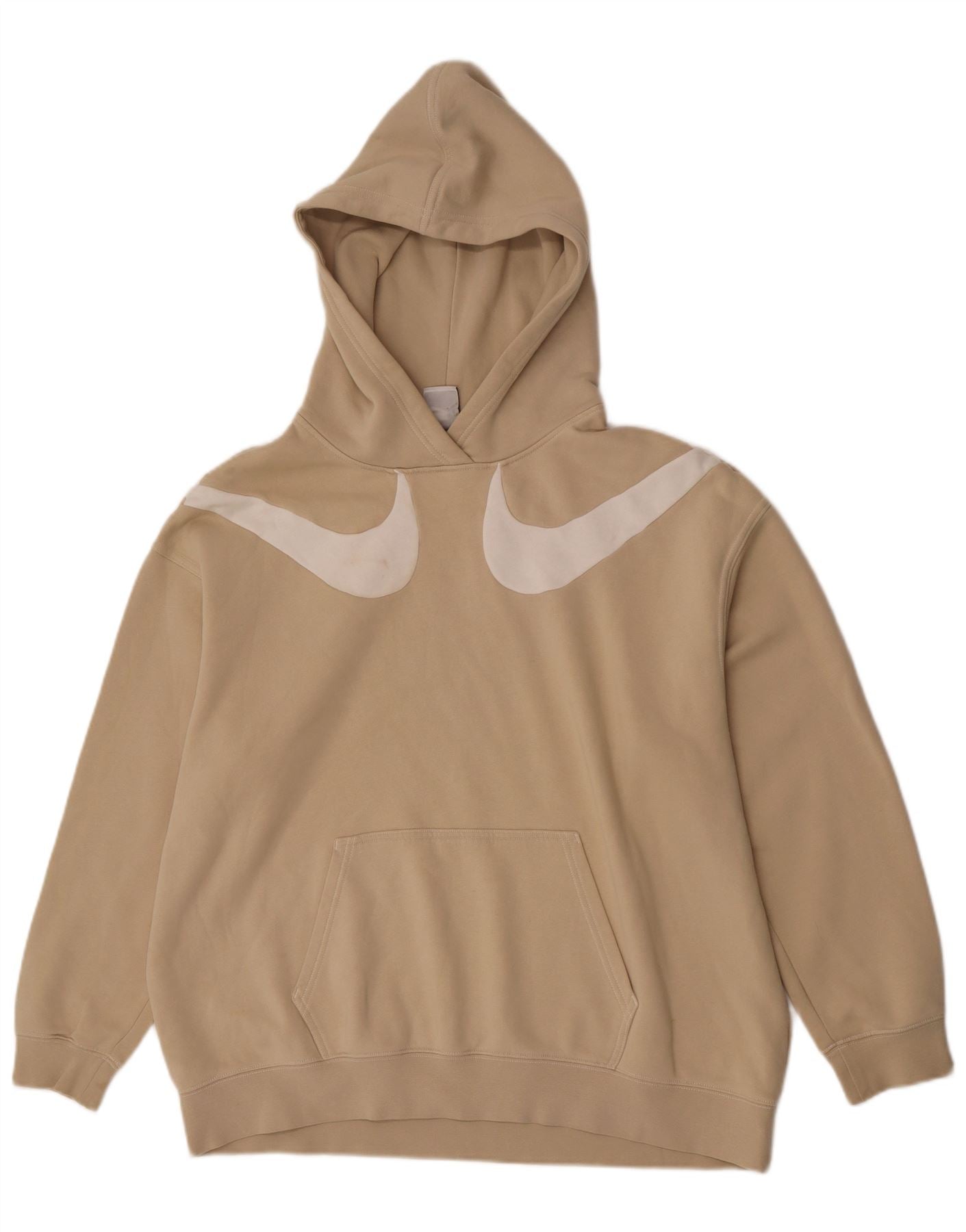 - Descrição da IA: Este moletom com capuz masculino da Nike é feito de lã bege macia, oferecendo calor e conforto. Apresenta um design clássico com capuz e um ajuste descontraído para facilitar o uso. Mangas compridas e gola redonda completam a silhueta. Um prático bolso canguru fica na frente. O logotipo Swoosh branco proeminente no peito adiciona um toque distinto da marca. Este estilo pulôver garante camadas sem esforço.