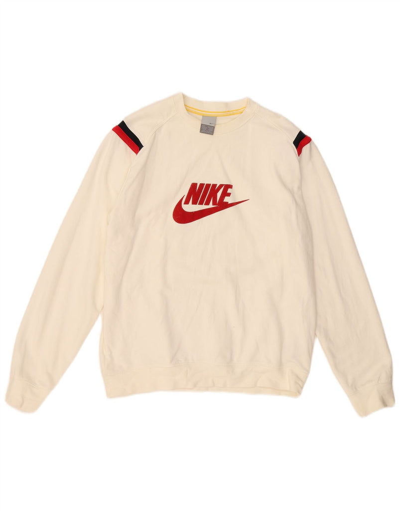 NIKE Mens Graphic Sweatshirt Jumper UK 42/44 Large Off White Cotton